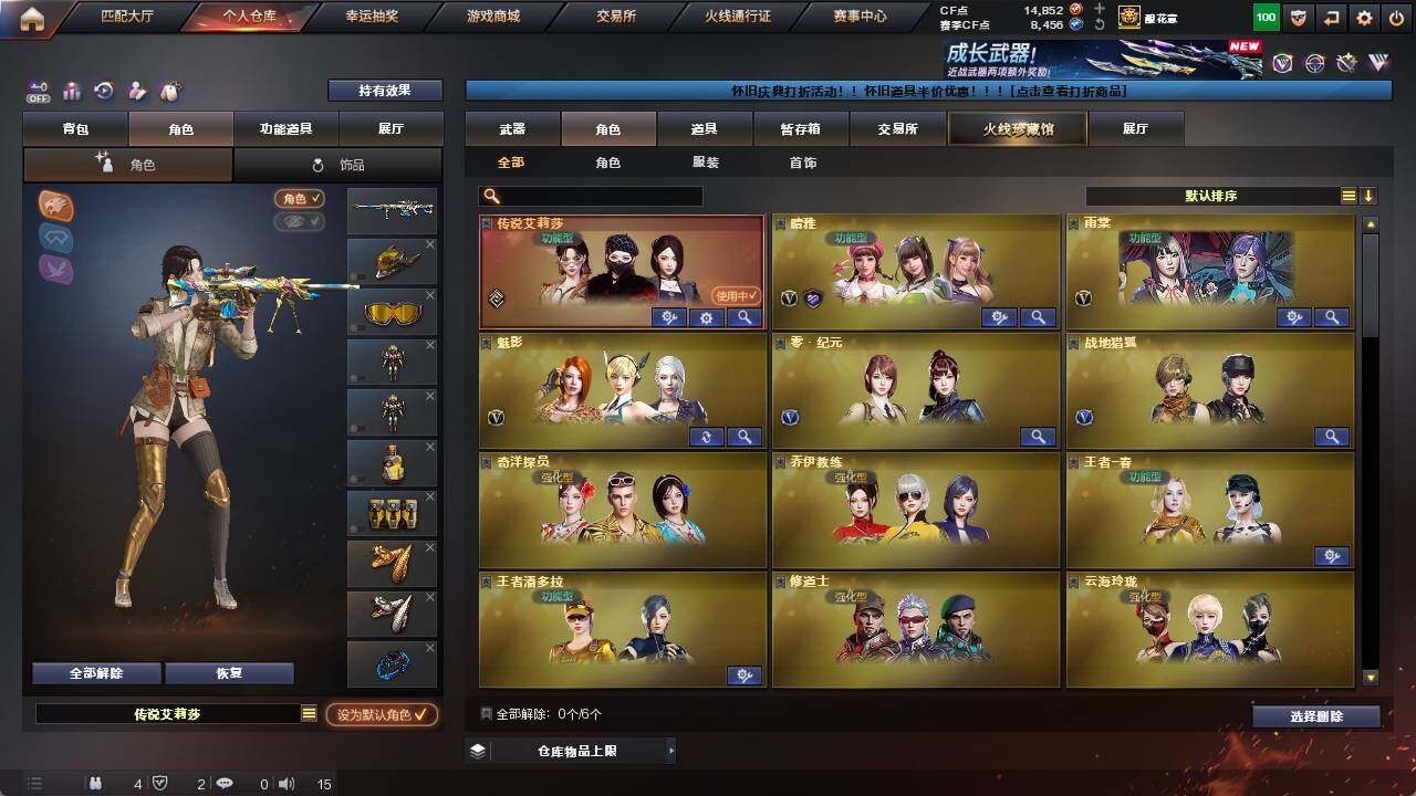 【角色】:传说艾莉莎,王者春,王者潘多拉,灵狐者-职业经理,魅影,幽,雨棠,晴雅,战地猎狐,铁骑荣耀,职业选手