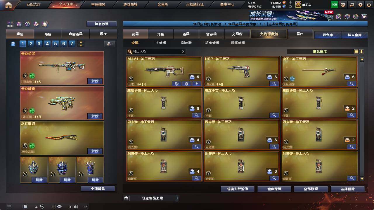 【英雄级武器】:QBZ03-云龙,COP 357-云龙,M4A1-神工天巧,USP-神工天巧,唐刀-神工天巧,擎天-竞技荣光
