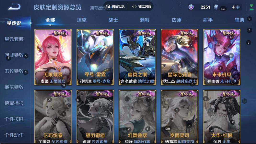 白起狰,太乙真人饕餮,曹操烛龙,芈月重明,典韦穷奇,狂铁御狮,米莱狄御霄,牛魔御旌,盾山御銮,夏侯惇朔风刀,明世隐疑决卦,老夫子醍醐杖,鬼谷子原初探秘者,狄仁杰万华元夜,程咬金演武夺筹,钟馗驱傩正仪,苏烈千军破阵,吕布猎兽之王,嬴政白昼王子,女娲朔望之晖,典韦蓝屏警告,钟馗神迹守卫,鲁班七号狮舞东方,沈梦溪星空之诺,李元芳银河之约,刘邦夺宝奇兵,马可波罗暗影游猎,蒙犽狂想玩偶喵,元歌云间偶戏,弈星混沌棋,达摩沙漠行僧,兰陵王金庭之子,沈梦溪大漠名商,李元芳云中旅人,桑启海盐诗旅,裴擒虎擒涛扼浪,鲁班大师探海日志,张良古海寻踪,项羽苍威无极,镜青焰无极
