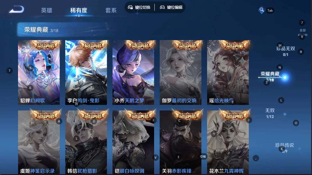 - [11523479]V8 1典藏 3珍品传说 18传说 125英雄 296皮肤 典藏英雄武则天 可修改实名 荣耀水晶:星空梦想(太空人) 珍品传说:怪盗基德,朽木白哉,黑崎一护 传说皮:云诺千山,幻光神枪,黄金狮子座,黄金射手座,黄金白羊座,地狱火,末日机甲-孙尚香(绿蚂蚱),云霓雀翎,一念神魔,胖达荣荣,时之恋人-刘备(电焊工),飞鸢探春,超时空战士-狄仁杰,神器·狴犴令,妄想实况 珍宝阁皮:妄想食味,优雅恋人 限定皮:愿照·岁时盈(虞姬年限),逐霄战戟,陌上桑,鸣野蒿,高山流水,五谷丰年,游园惊梦,梁祝,逐梦之星,烈魂,李小龙,孙行者,乒乒小将,山海·玄木吟(马可年限) 史诗皮:小牛鸭,石田雨龙,百相守梦-百里守约,东方月初,破空之剑,电玩小子(小书包),黄金分割率,特工魅影,千年之狐,末日机甲-莱西奥,江河有灵,百解令(蒙犽),蒙恬荣光圣徽,冰冠公主,青蛇,偶像歌手,晚萤,魅语,白蛇,电玩·爆裂旋风,末日机甲-吕布,猫狗日记-孙策,猫狗日记-大乔,乱世虎臣,修罗,女仆咖啡,摇滚巨星,水果甜心,绅士熊喵,天才门将,星夜王子,心灵骇客,时之奇旅-安琪拉,功夫厨神,德古拉伯爵,暗隐猎兽者,幽灵船长,鬼剑武藏,心灵战警,舞动绿茵,地狱岩魂,纤云弄巧,缤纷独角兽,乘风破浪,逐浪之夏,龙鼓争鸣,月团寄思,水晶猎龙者,曙光守护者,箭羽风息,金属风暴,原初追逐者,圣诞狂欢,圣诞恋歌,鹰眼统帅,暗夜贵公子,魅力维加斯,黎明之约,奇遇舞章,未来纪元-赵云