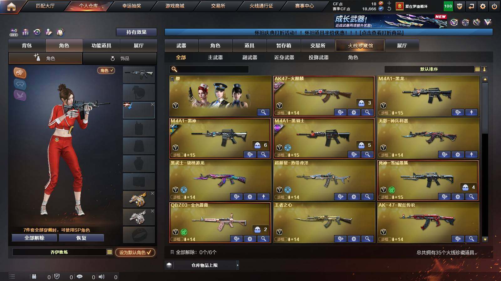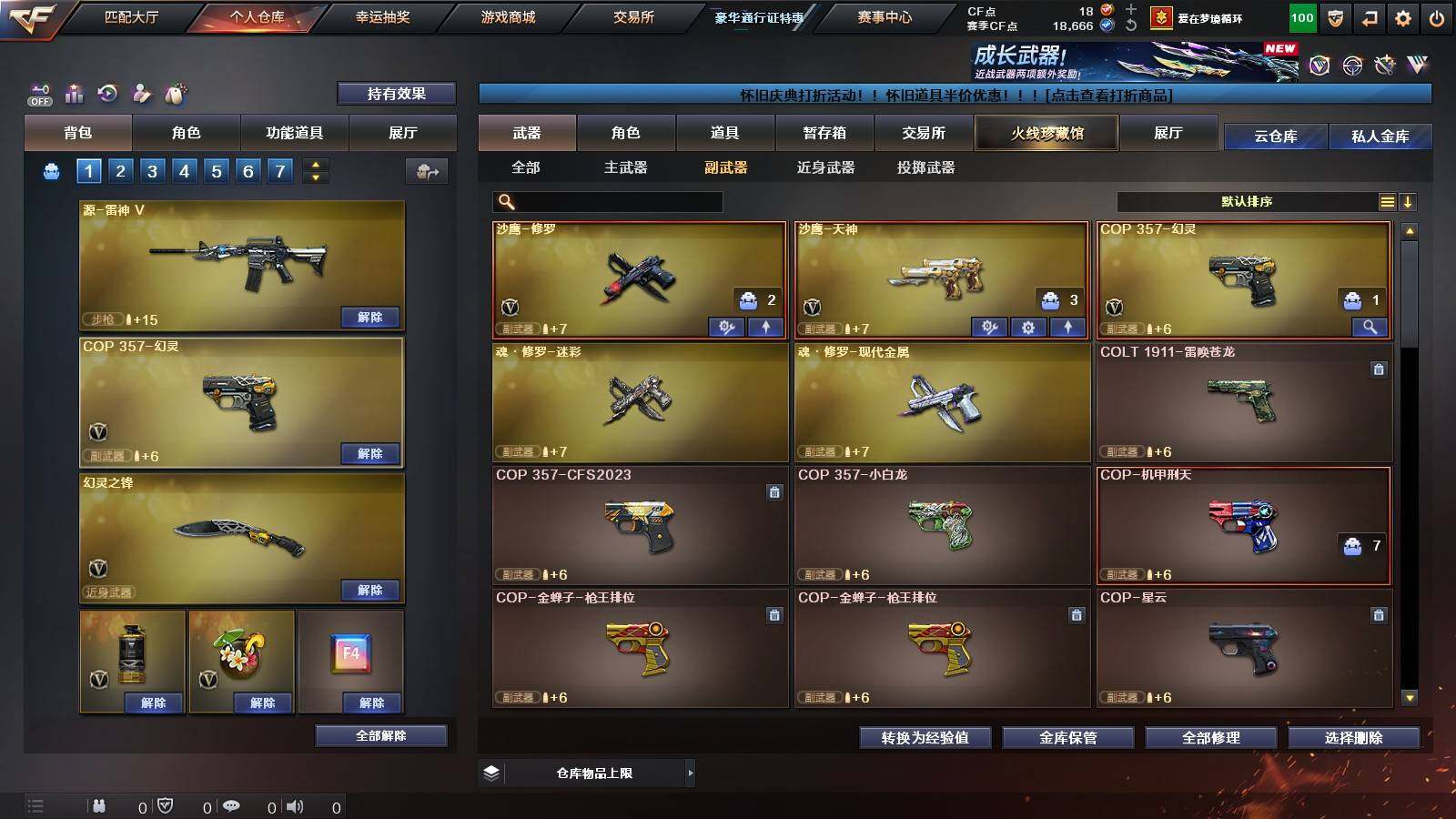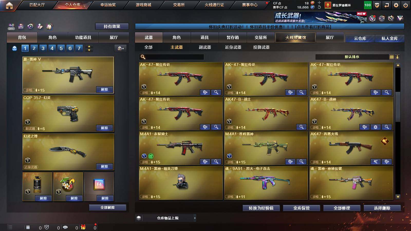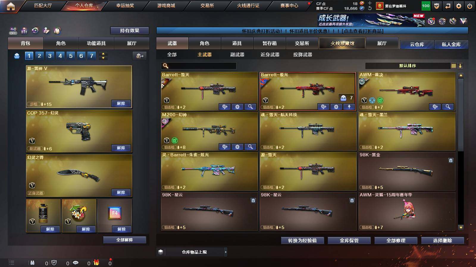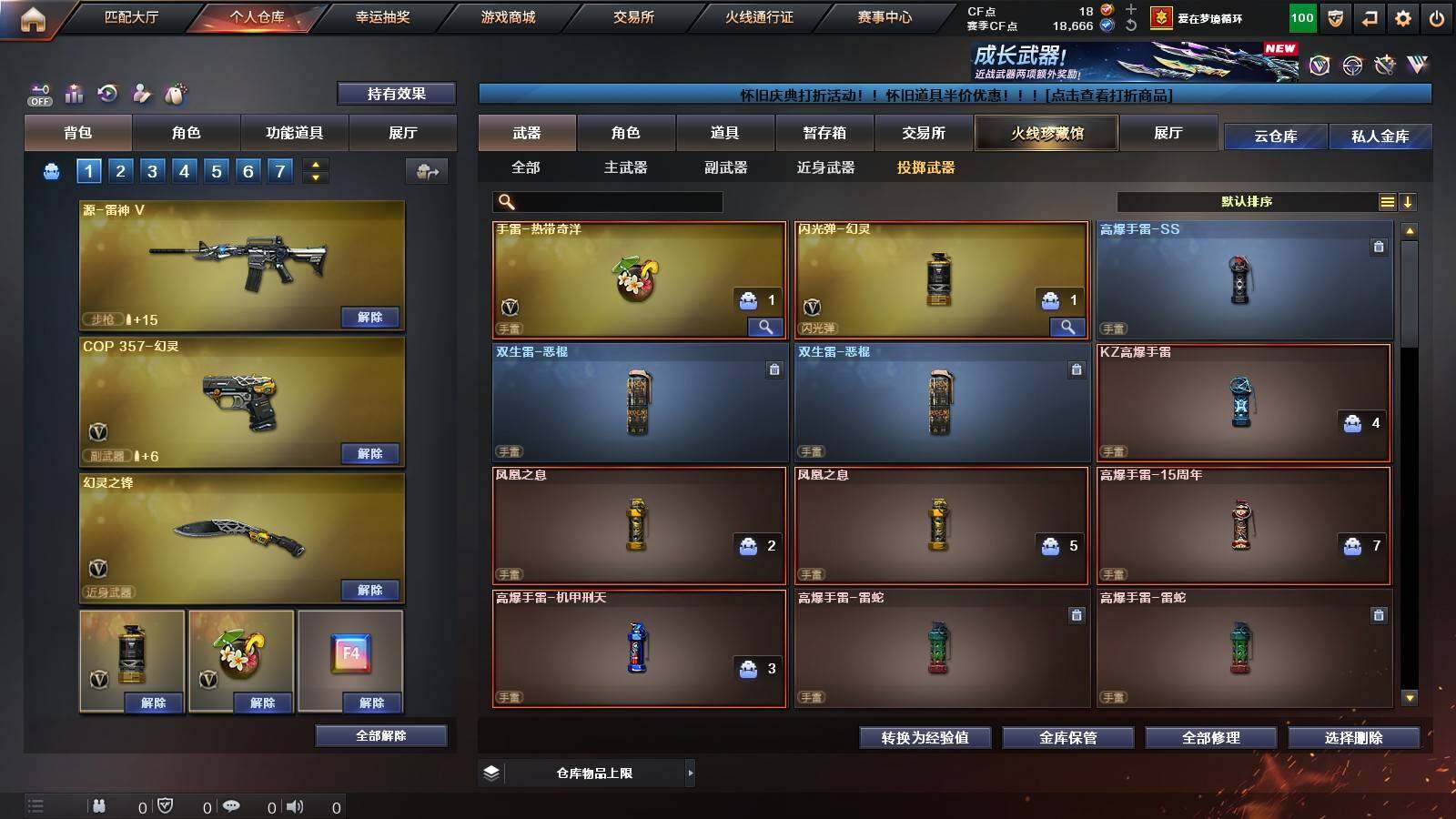 【人偶武器】:AWM-灵狐-15周年嘉年华*2,M4A1-雷神-精英刀锋,迷你艾比,迷你超能女侍,迷你牛牛,灵狐娃娃手雷,生化手雷-机甲核心,闪光弹-小乔