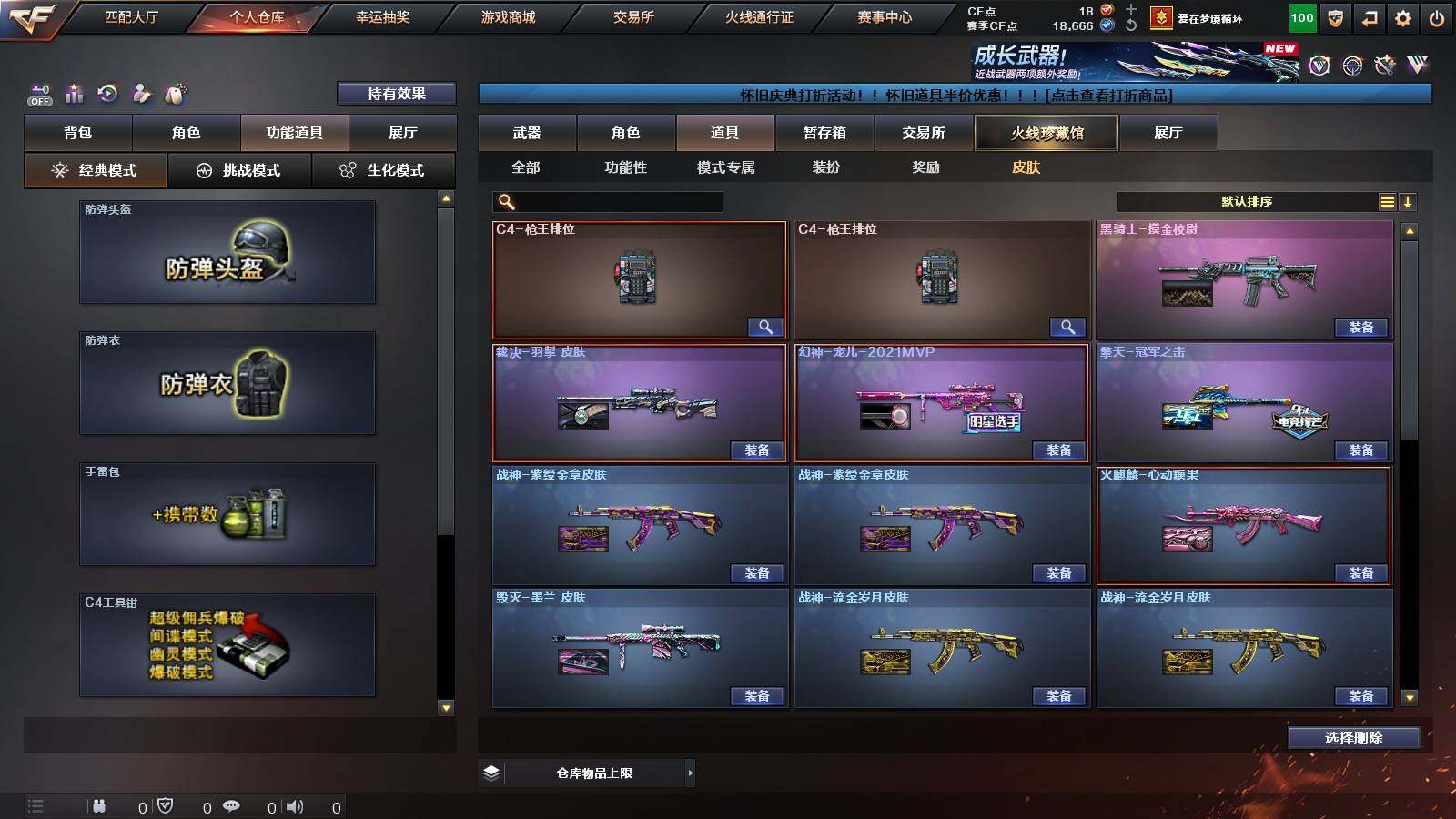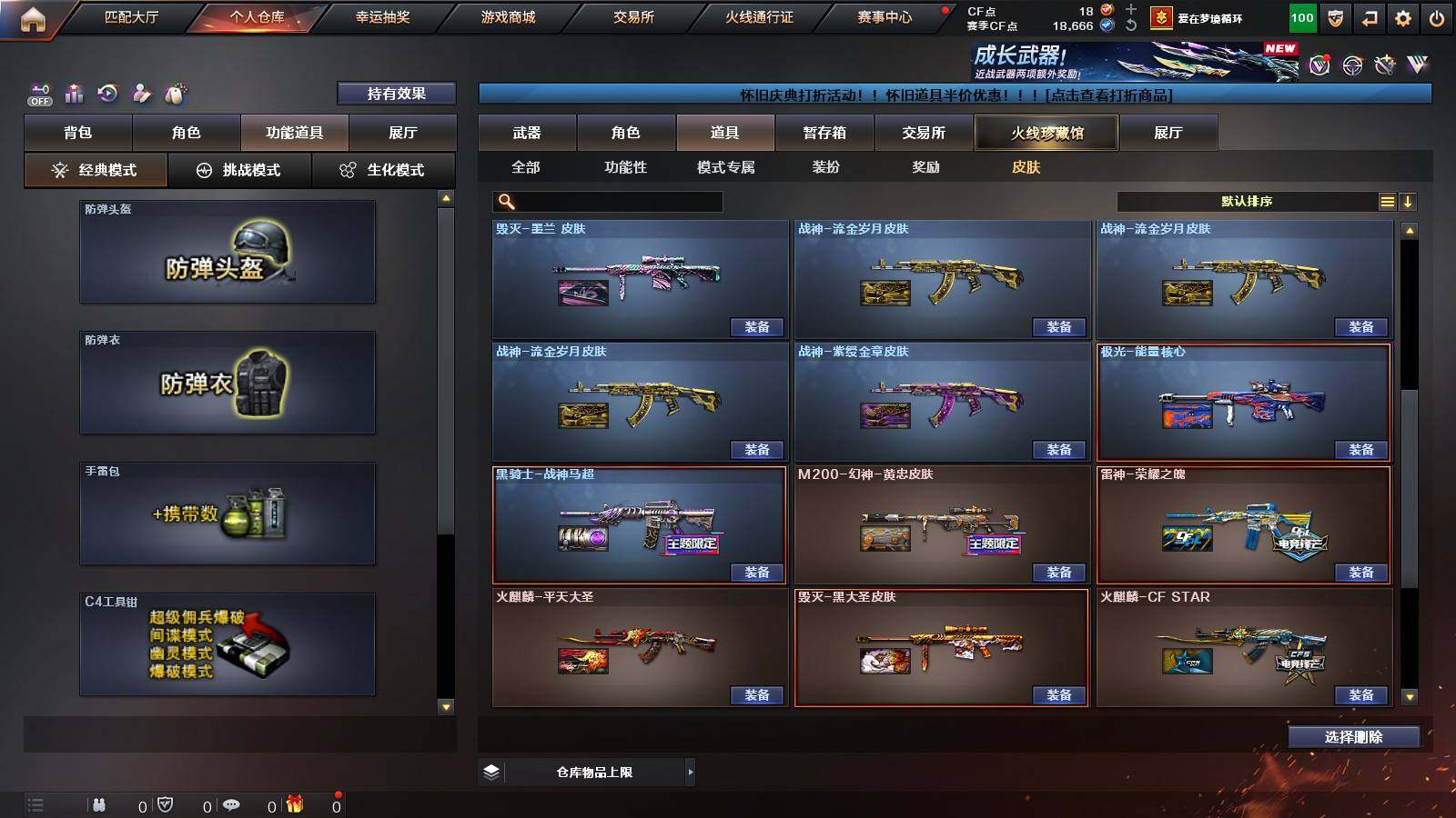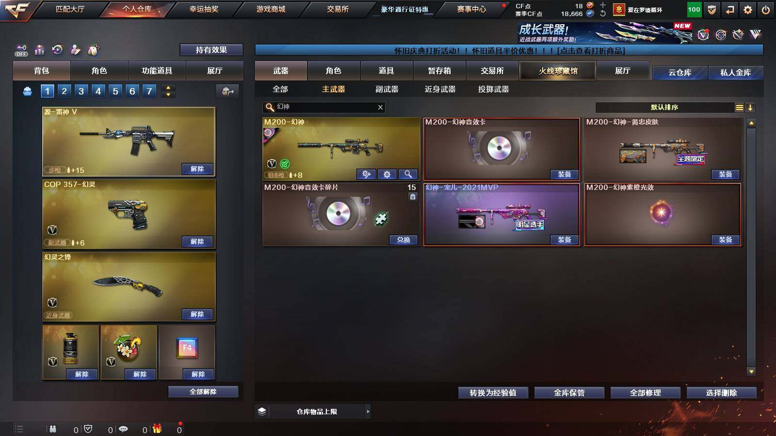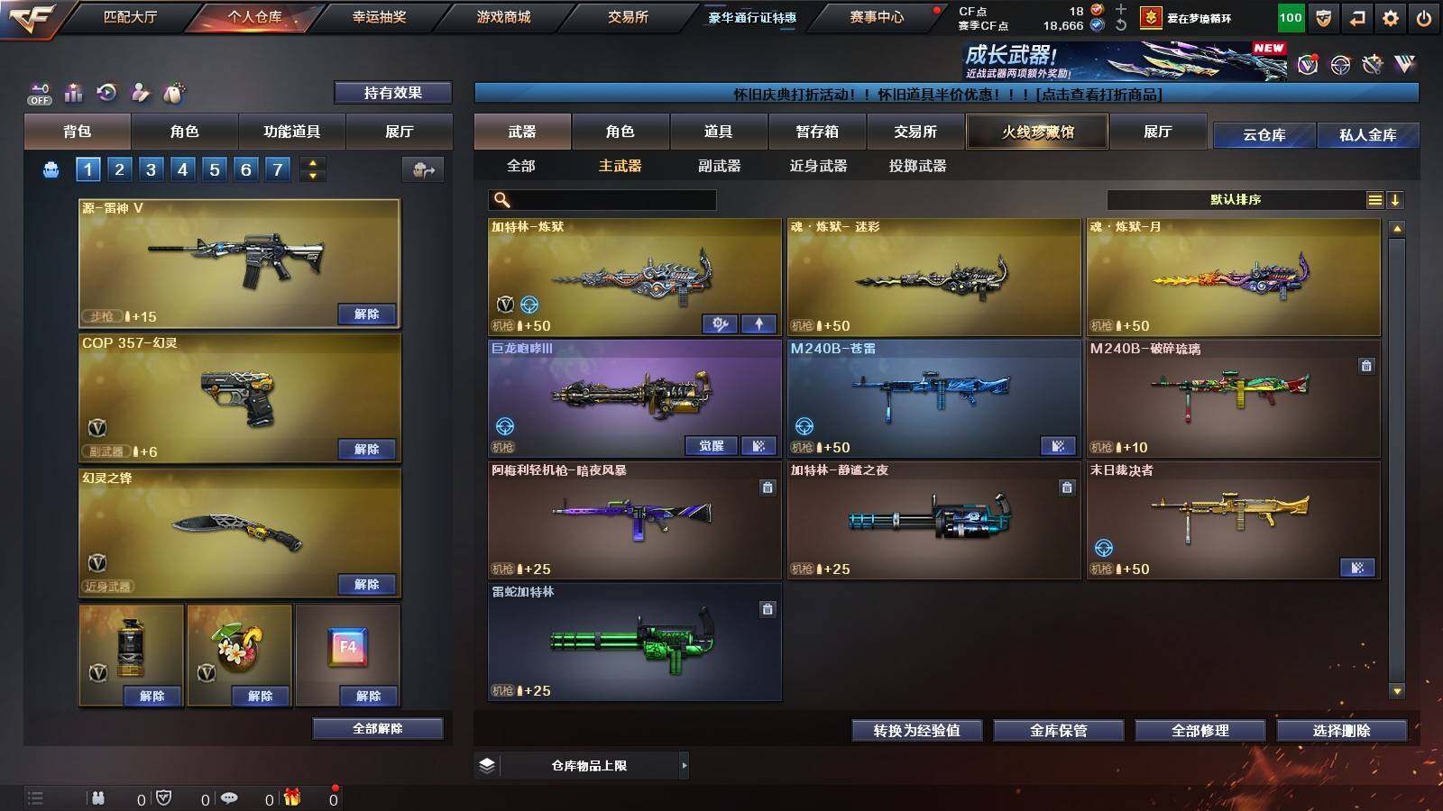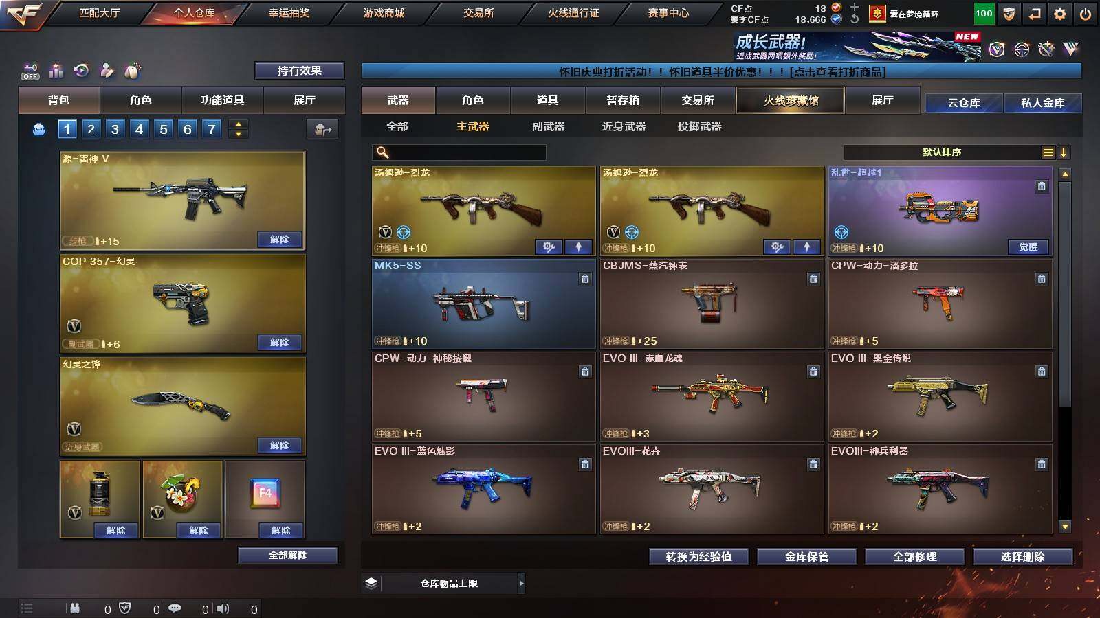 【人偶武器】:AWM-灵狐-15周年嘉年华*2,M4A1-雷神-精英刀锋,迷你艾比,迷你超能女侍,迷你牛牛,灵狐娃娃手雷,生化手雷-机甲核心,闪光弹-小乔