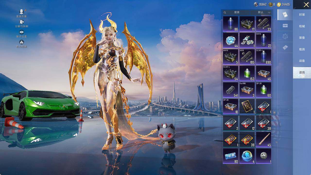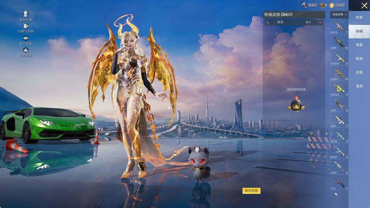 AKM-梦之光华,AKM-幽焰骑士,M16A4-垂柳戏鸭,SCAR-L-童趣迷兔,SCAR-L-青春物语,SCAR-L-纯梦嫁纱,SCAR-L-金蛇镇世,M416-五爪金龙,M416-风花雪月,M416-超新星,GROZA-香水柠檬,AUG-超新星,M762-冷魅冰骑,UMP45-恐龙拽拽,UMP45-玉魂晶魄,Vector-环太平洋,P90-沙丘之主,Kar98K-巳巳如意,Kar98K-圣域龙灵,Mk14-盛世惊鸿,M417-第五大道,MG3-酷泡奶龙,烟雾弹-丁香清露,破片手榴弹-热量炸弹