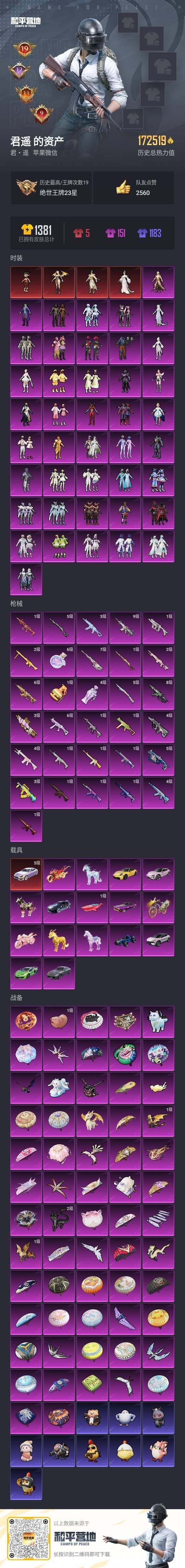 - [10598444]实名: 可修改 时装数: 334 枪械数: 123 战备数: 80 热门装扮: 梦幻火箭(新101),银河战甲,紫电风暴,蔷薇星,绯穹魔姬 稀有枪皮: Vector环太平洋,Kar98K-巳巳如意,镰刀-幽影之判