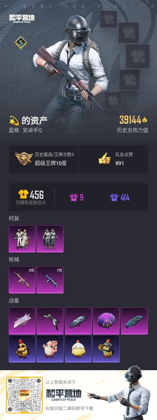- PX_2095387- 安卓手Q-23王牌印记-5粉装-5特效枪-1载具-97460热力值-209套装-306枪皮-6卓越印记-2传奇印记 【5粉装】,夜幕颂歌,海渊国主,月影灵韵,莲影清波,香水柠檬 【5特效枪】AKM-炫紫旋律-7级 SCAR-L-锦绣绵绵-5级 M416-五爪金龙-7级 GROZA-镜光银凌-5级 Kar98K-巳巳如意-5级 【2稀有紫装】,浪漫天命,龟仙人, 【1稀有载