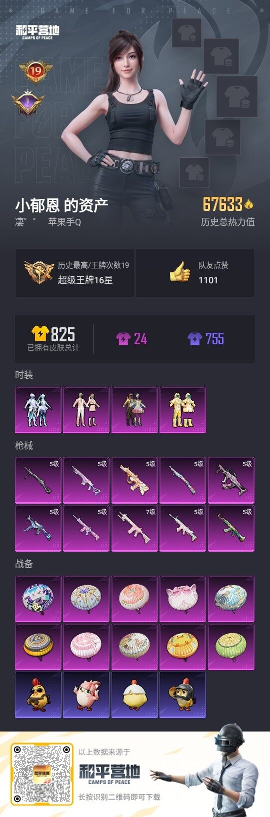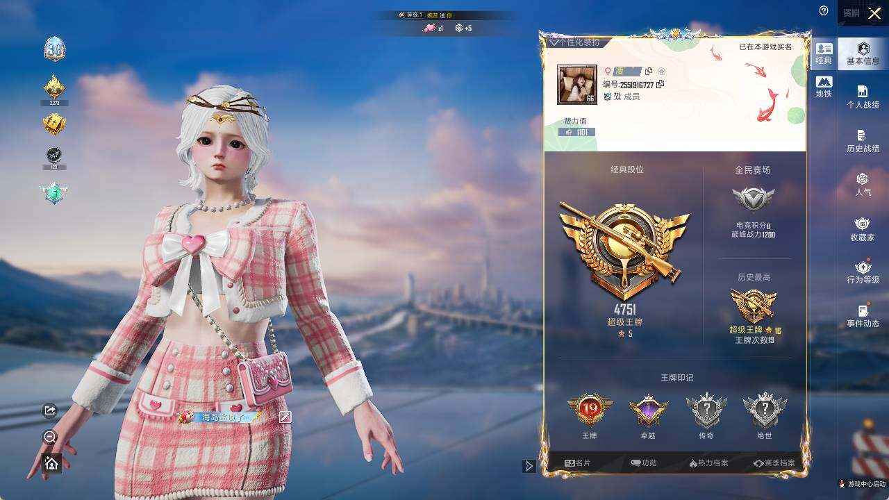 - PX_2079932- 安卓手Q-10王牌印记-6粉装-8特效枪-0载具-59621热力值-144套装-191枪皮-1卓越印记-0传奇印记 【6粉装】,光极星,憨憨奶龙,无畏白羊,沙场疾风,圣堂之誓,烟云彩露 【8特效枪】M416-风花雪月-7级 GROZA-镜光银凌-5级 AUG-暖羊咩咩-5级 M762-激战未来-7级 Kar98K-巳巳如意-5级 Mk14-甜梦熊击-5级 UMP45-量子极