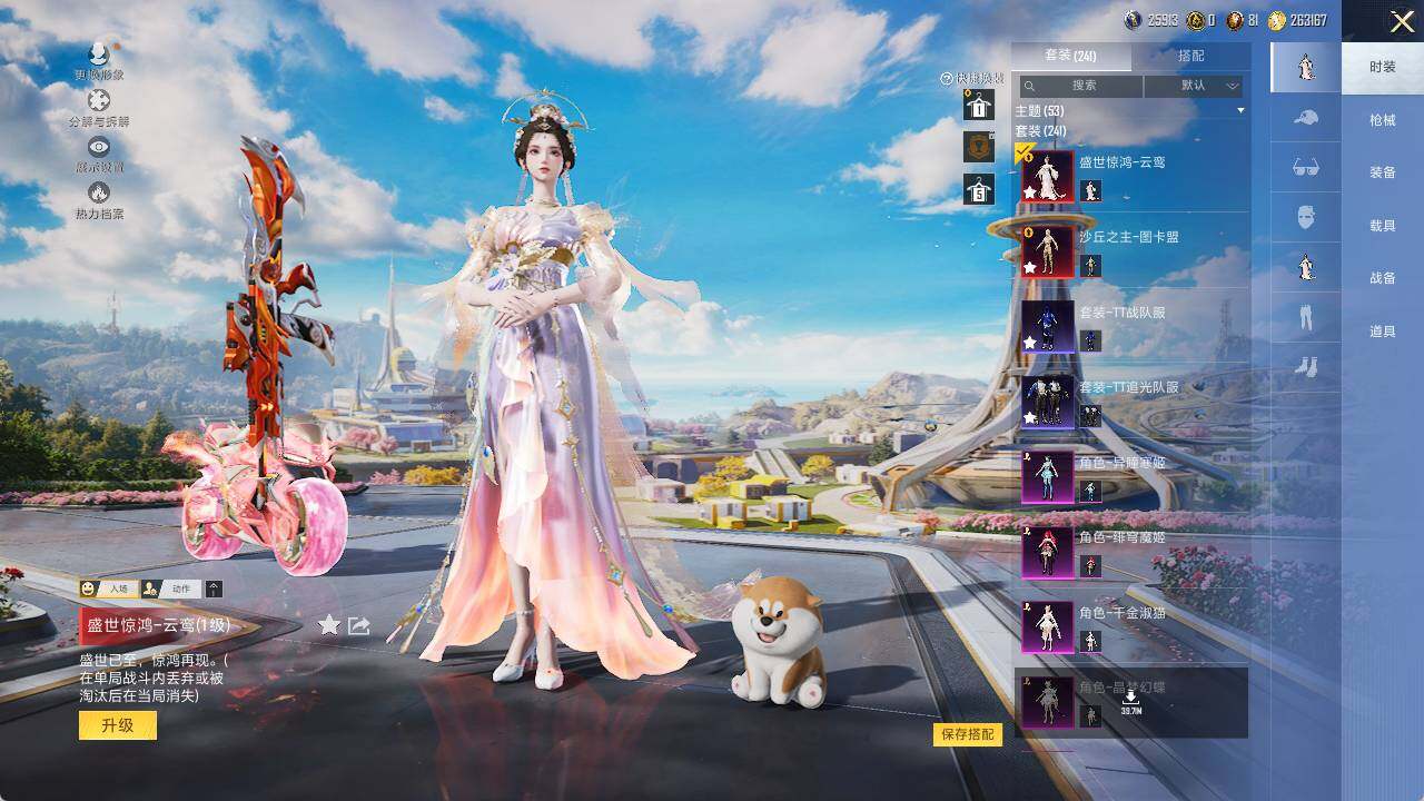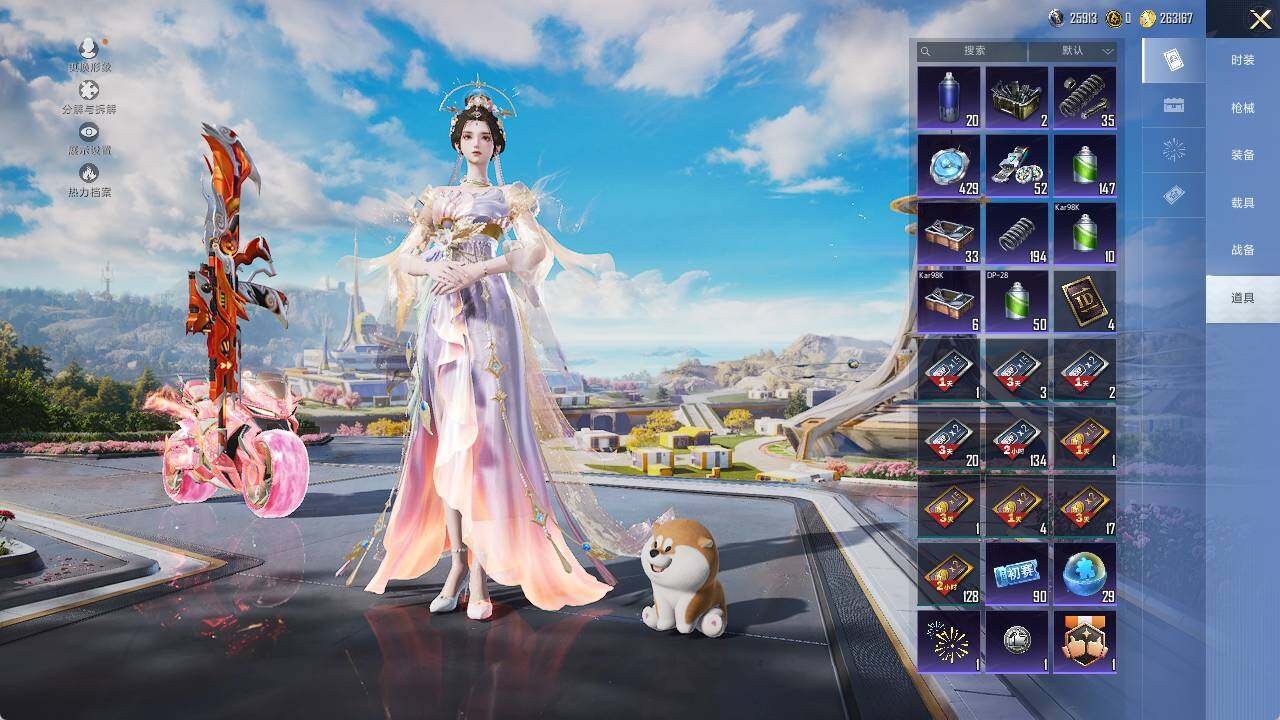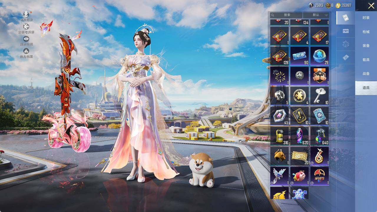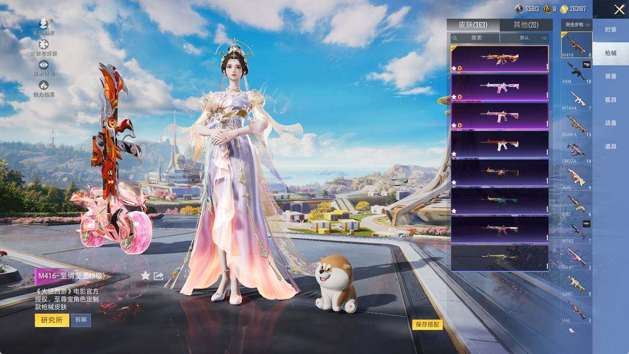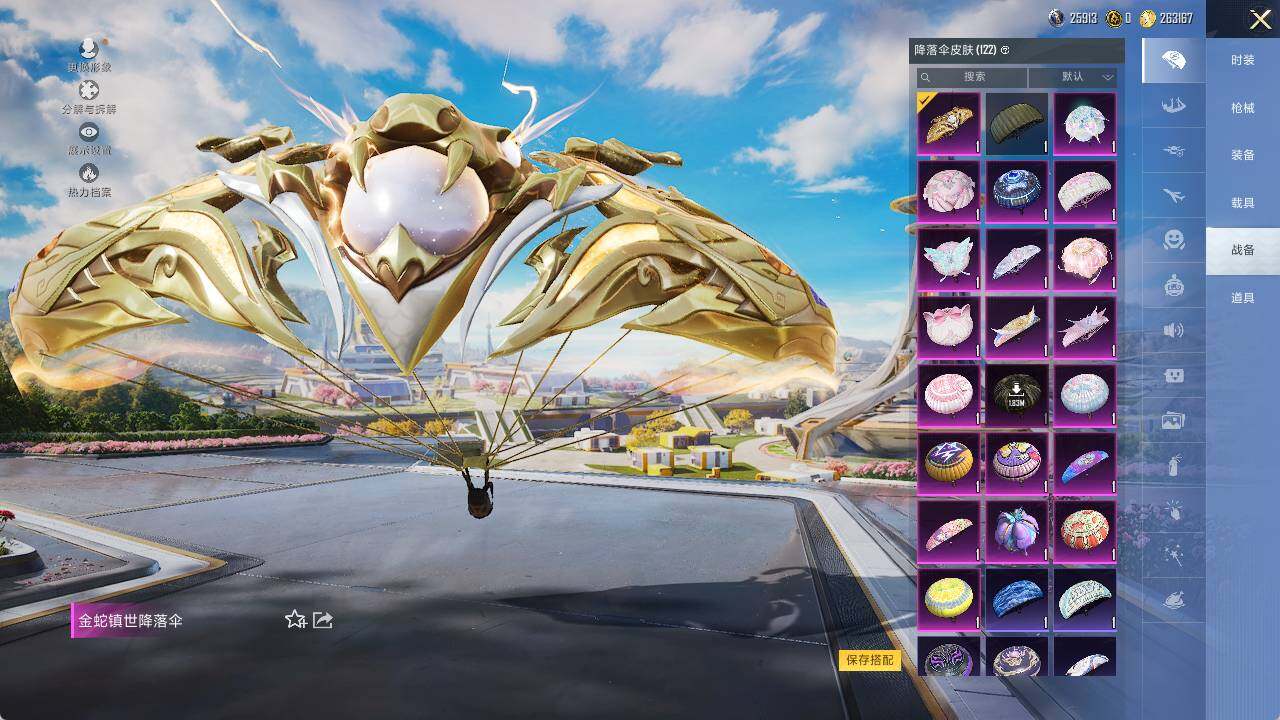 AKM-绿萝繁花,SCAR-L-金蛇镇世,M416-心之恋语,M416-至情至圣,M416-电玩时刻,GROZA-镜光银凌,AUG-暖羊咩咩,Vector-飒粉甜心,P90-沙丘之主,Kar98K-巳巳如意,M24-镜域双华,Mk14-盛世惊鸿,DP-28-千金淑猫,烟雾弹-丁香清露,破片手榴弹-热量炸弹