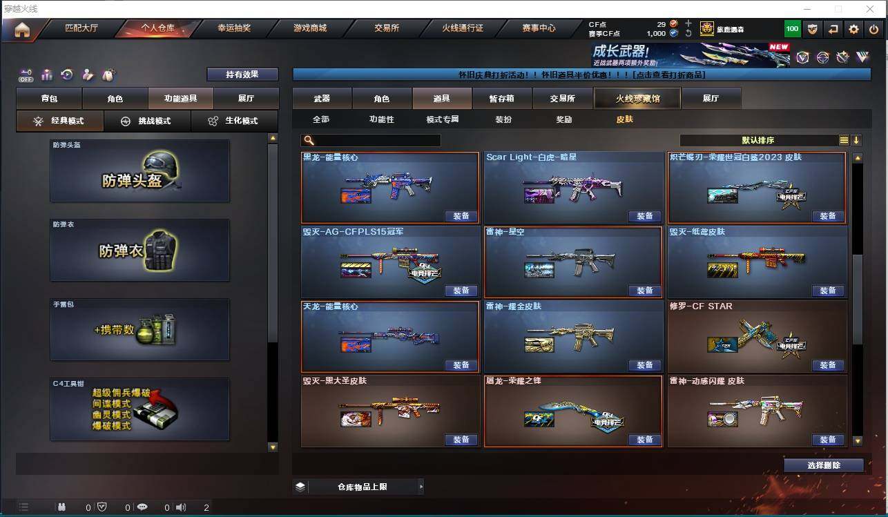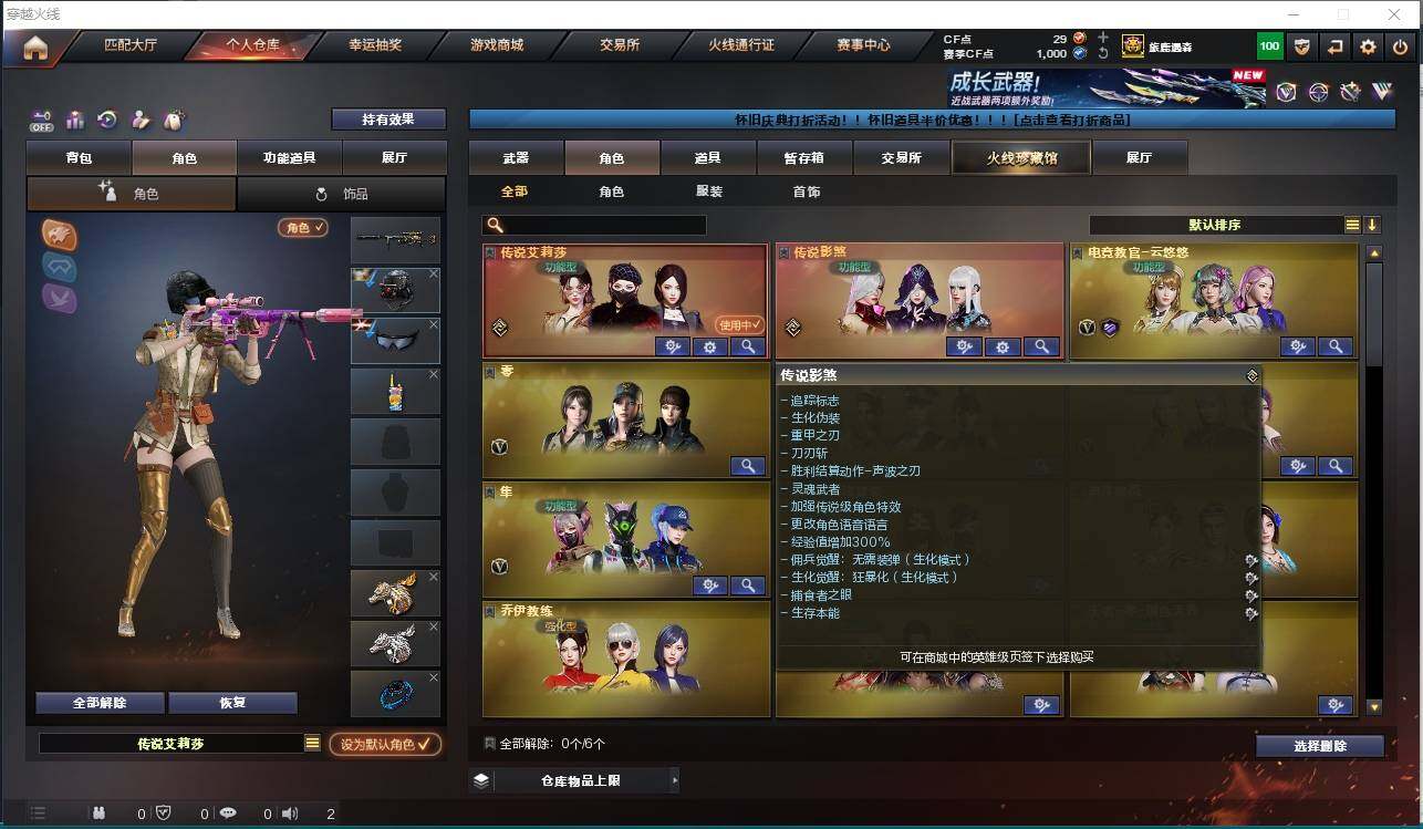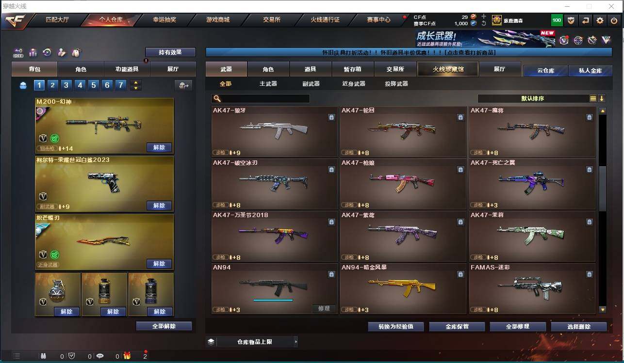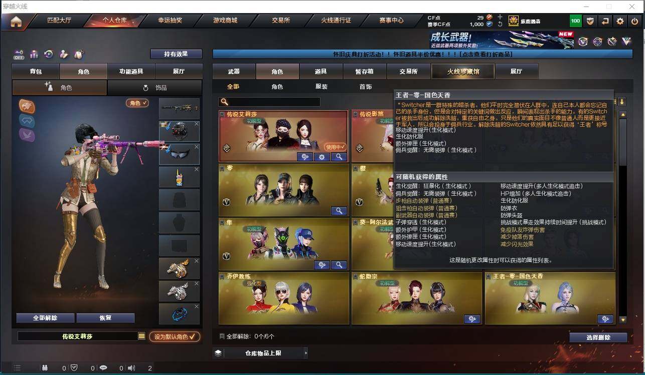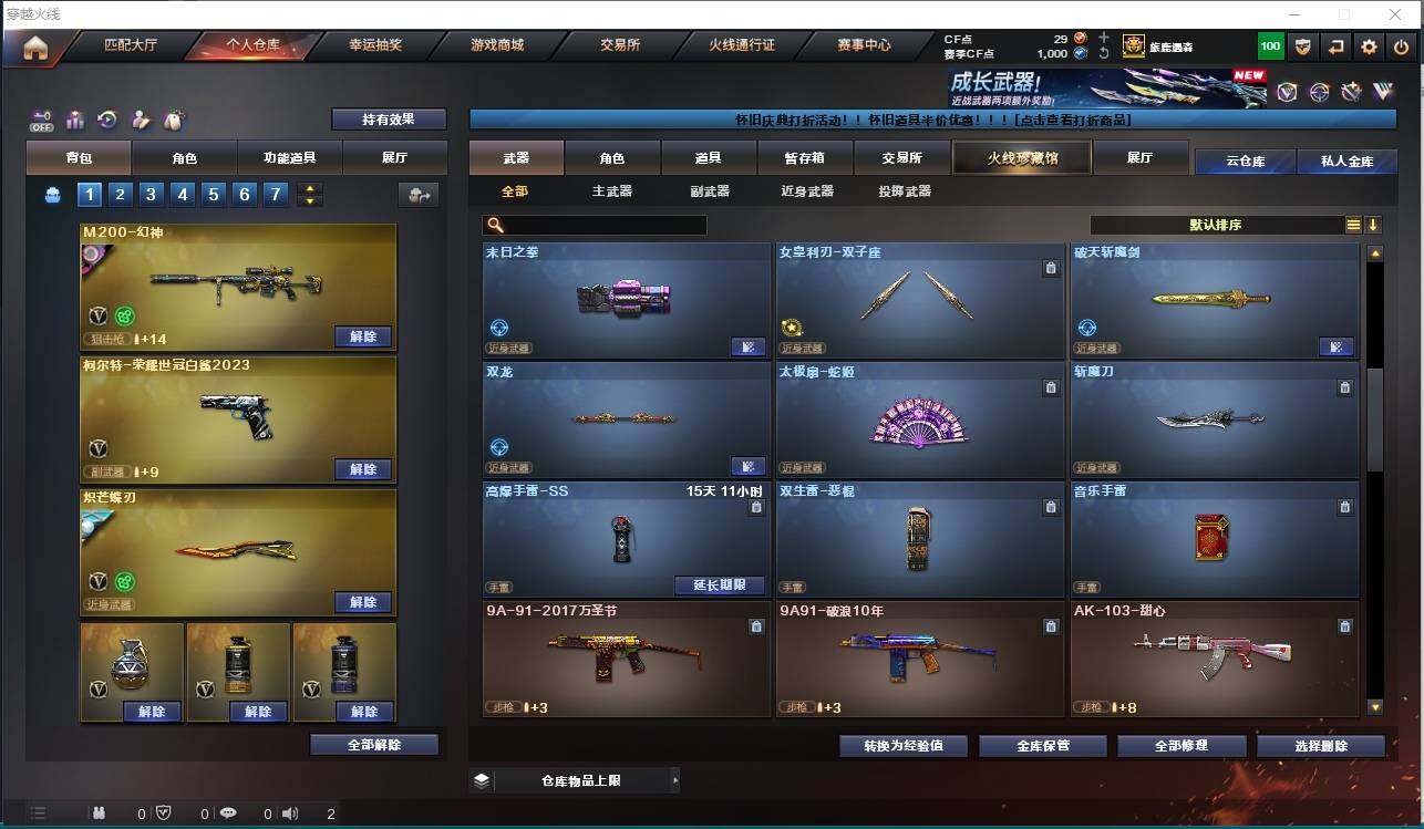 - [10744569]实名: 可修改 时装数: 111 枪械数: 50 战备数: 28 热门装扮: 霓裳武神,暗夜鎏金,纯珍童话 稀有枪皮: MG3洛神天依,M24翩跹演武