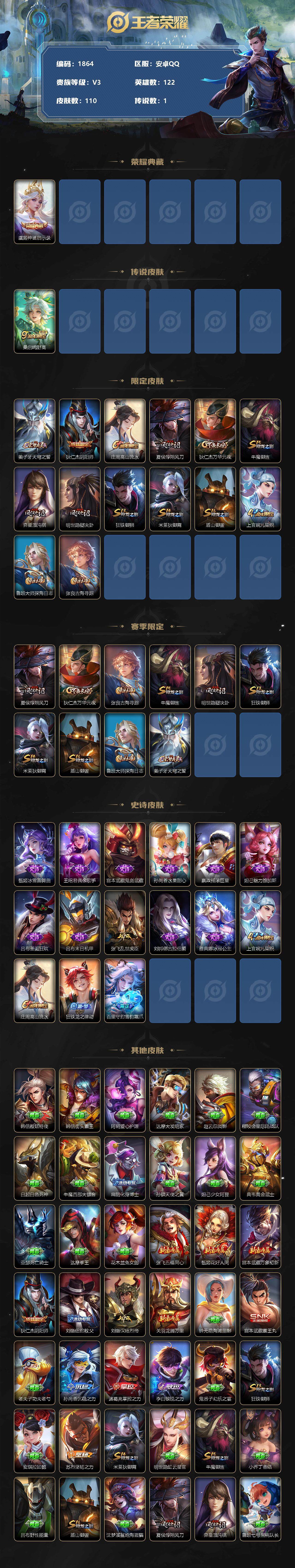 [12721541]安卓Q-V1-最强王者段位-122英雄-110皮肤-1典藏-0珍品无双-0无双-0珍品传说-1传说-15史诗