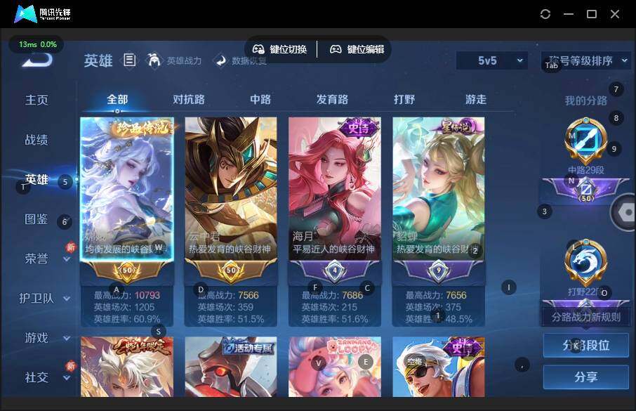- [12075255]V5 1典藏 123英雄 119皮肤 可修改实名 优质装备:杀手不太冷,涂山容容 珍宝阁皮:蔷薇恋人 限定皮:五谷丰年,梁祝,李小龙,辉光之辰 史诗皮:化蝶舞,千年之狐,偶像歌手,猫狗日记-孙策,水果甜心,鬼剑武藏,圣诞狂欢,鹰眼统帅