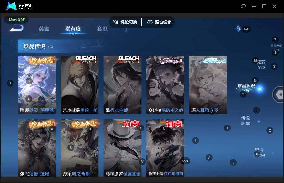 - [11650148]V6 1典藏 2珍品传说 4传说 123英雄 126皮肤 可修改实名 优质装备:全息碎影(猴子典藏),朽木白哉,黑崎一护,涂山容容 传说皮:幻光神枪 珍宝阁皮:胡桃夹子 限定皮:愿照·岁时盈(虞姬年限),愿照·千秋盛(女娲年限),鸣野蒿,神威(电光马子),高山流水,梁祝,默契交锋-花木兰 史诗皮:鸭鸭历险记-刘禅,器灵·浮梦炉,化蝶舞,谪仙醉月,龙之律动,石田雨龙,茶境仙,破空之剑,紫霞仙子,黄金分割率,特工魅影,魅语,蒙恬荣光圣徽,无限星赏官,冰冠公主,青蛇,水果甜心,德古拉伯爵,暗隐猎兽者,鬼剑武藏,天秀·启明,拒霜思,乘风破浪,水晶猎龙者,曙光守护者,圣诞狂欢,鹰眼统帅,魅力维加斯