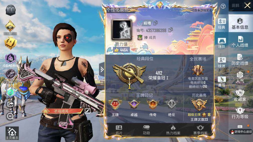 - [11604408]4粉装 6特效枪 1载具 14印记 可二次 可修改实名 身法装备:暗影哥特(红眼罩) 优质装备:路特斯EVIJA(星际黄),AKM炫紫旋律,M416五爪金龙,奇异狩猎者,金风玉露,彗云及圣,AUG星之彼岸,七级AUG-星之彼岸,七级AKM-炫紫旋律,智耀战神,AMR-智耀战神,Kar98K-巳巳如意 热门装扮:筑梦精灵,神秘黑猫,仓鼠灰灰,鹰眼刺客,浪漫波比,好奇恐龙 稀有枪皮:DP-28-豹影疾电 六级特效枪:六级AMR-智耀战神 五级特效枪:五级Kar98K-巳巳如意,五级DP-28-豹影疾电 四级特效枪:四级M416-五爪金龙 紫色装扮:娇憨猪猪,萌趣咩咩,SS21特训,SS31特训套装,SS5特训,冰川特警,冷焰舞者,凛冬战士,刚毅裁决者,北国孤狼,旭日情侣,极速光影,SS30特训套装,SS33特训套装,顶瓜瓜,SS20特训,时空追击者,暴风机械师,SS16特训,冰爽风暴,SS13特训,骁骑迪迦,SS14特训,音速流光,SS19特训,军刀雅典娜,甜心亚梦,虚音幻奏,瑞龙福将,团圆交子,SS17特训,SS18特训,智慧隐士,都市漫游者,都市魅力,酷潮明星,长空猛禽,雨林探路者,雪山征服者,雪山精英,霓虹极客,霓虹街区,青春校园,缤纷果语,耀眼新星,荣耀,蓝彩潮人,蓝色运动,虎虎生威吉莉,街头潮人,跃动心情,魅力单车,黎明保卫者,黑色伏地魔,龙的传人,沙漠毒蛇,极地朋克,极速红龙,格斗先锋,棕色飞行服,沙漠兵团,暗金炫舞,海岛探路者,深蓝色名流,清新柠檬,滨海假日,圣诞大吉,坚韧舞者,夏日音浪,幻世战舞者,探宝勇士,滨海厨神,绮丽涂鸦,疯狂小兔子,白熊同盟,白色伏地魔,甜蜜告白,福星高照,竞技勇士朋克,竞技达人朋克,甜蜜熊情侣,潮流先锋,牛气冲天,灰色格斗者,热血青春,熔岩使者,牛气满满,特战装甲,SS29特训,星途旅人,光矢逐梦,异域银装,鱼渊荷华,玉兔迎春,燕燕于飞,巳巳如意,烈火街头,森林游猎者,竞技名士,暗影哥特(红眼罩),街头风暴,惊鸿侠骨,SS24特训(SS24特训套装),SS25特训,锦衣飞扬,粉红小猪,金羽特工,小丑鱼,SS26特训,智谋强哥,精神漫游,炽焰拳师,格斗专家,SS6特训,银河圣歌,闪耀星光,黑色刀锋,核芯基因,拳皇97八神庵,SS7特训,人鱼之吻,深蓝冒险家,迷域探索者,精密机核,摩艾涂鸦,SS8特训,大橘大利,SS12特训,众