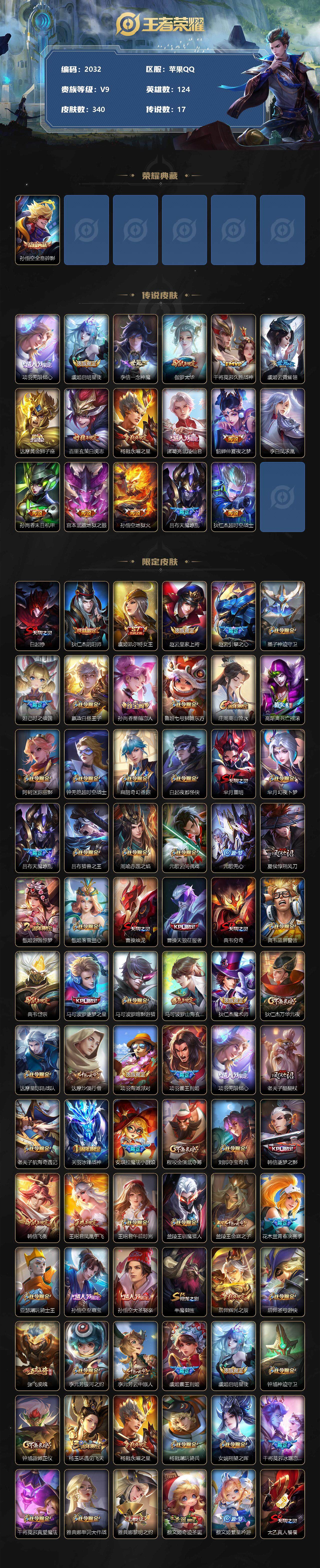 [12746125]苹果Q-V9-尊贵铂金I段位-124英雄-340皮肤-1典藏-0珍品无双-0无双-0珍品传说-17传说-106史诗