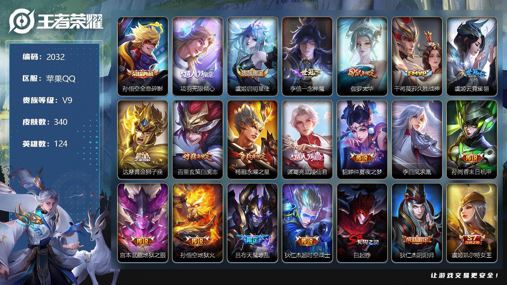 [12746125]苹果Q-V9-尊贵铂金I段位-124英雄-340皮肤-1典藏-0珍品无双-0无双-0珍品传说-17传说-106史诗 【英雄全皮】:孙权全皮 【荣耀典藏】:孙悟空全息碎影 【传说皮肤】:项羽无限倾心,虞姬启明星使,李信一念神魔,伽罗太华,干将莫邪久胜战神,虞姬云霓雀翎,达摩黄金狮子座,百里玄策白虎志,杨戬永曜之星,诸葛亮武陵仙君,貂蝉仲夏夜之梦,李白凤求凰,孙尚香末日机甲,宫本武藏地狱之眼,孙悟空地狱火,吕布天魔缭乱,狄仁杰超时空战士 【限定皮肤】:白起狰,狄仁杰阴阳师,虞姬凯尔特女王,赵云皇家上将,赵云引擎之心,墨子神迹守卫,妲己时之彼端,嬴政白昼王子,孙尚香蔷薇恋人,鲁班七号狮舞东方,庄周高山流水,高渐离死亡摇滚,阿轲迷踪丽影,钟无艳超时空战士,扁鹊奇幻香踪,白起夜都怪侠,芈月重明,芈月幻夜卜梦,吕布天魔缭乱,吕布猎兽之王,周瑜赤莲之焰,元歌云间偶戏,元歌无心,夏侯惇朔风刀,甄姬游园惊梦,甄姬落雪兰心,曹操烛龙,曹操天狼征服者,典韦穷奇,典韦蓝屏警告,典韦岱宗,马可波罗逐梦之星,马可波罗暗影游猎,马可波罗山海玄木吟,狄仁杰魔术师,狄仁杰万华元夜,达摩星际陆战队,达摩沙漠行僧,项羽海滩派对,项羽霸王别姬,项羽无限倾心,老夫子醍醐杖,老夫子航海奇遇记,关羽冰锋战神,安琪拉魔法小厨娘,程咬金演武夺筹,刘邦夺宝奇兵,韩信逐梦之影,韩信飞衡,王昭君凤凰于飞,王昭君午后时光,兰陵王驯魔猎人,兰陵王金庭之子,花木兰青春决赛季,亚瑟潮玩骑士王,孙悟空至尊宝,孙悟空大圣娶亲,牛魔御旌,后羿辉光之辰,后羿圣弓游侠,张飞虎魄,李元芳银河之约,李元芳云中旅人,虞姬霸王别姬,虞姬启明星使,钟馗神迹守卫,钟馗驱傩正仪,杨玉环遇见飞天,杨戬永曜之星,杨戬潮玩骑兵,女娲朔望之晖,干将莫邪冰霜恋舞曲,干将莫邪真爱魔法,雅典娜单词大作战,雅典娜黎明之约,蔡文姬奇迹圣诞,蔡文姬繁星吟游,太乙真人饕餮,太乙真人华丽摇滚,鬼谷子原初探秘者,鬼谷子五谷丰年,诸葛亮武陵仙君,黄忠烈魂,黄忠火炮绅士,铠青龙志,苏烈千军破阵,百里玄策白虎志,百里玄策原初追逐者,百里守约朱雀志,弈星混沌棋,梦奇顽趣,沈梦溪星空之诺,沈梦溪大漠名商,明世隐疑决卦,明世隐吟游魔法,裴擒虎李小龙,裴擒虎擒涛扼浪,狂铁御狮,狂铁电玩高手,米莱狄御霄,米莱狄胡桃异想国,云中君纤云弄巧,伽罗太华,盾山御銮,猪八戒西部大镖客,上官婉儿梁祝,嫦