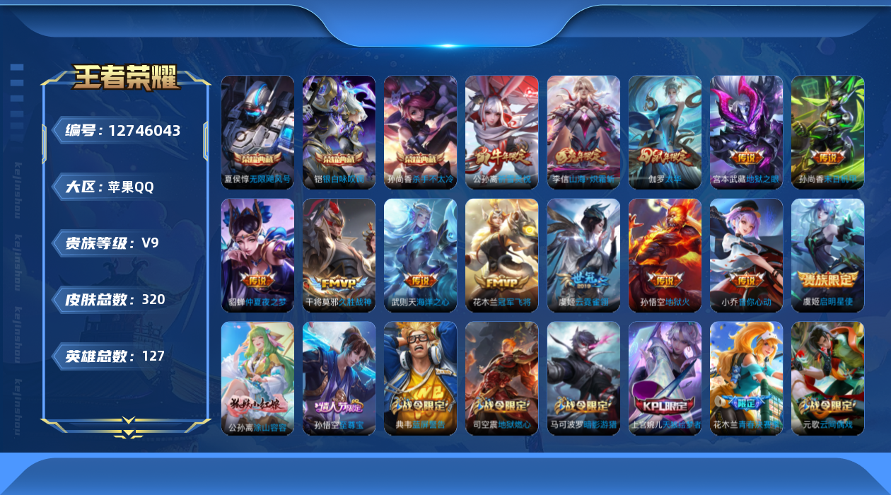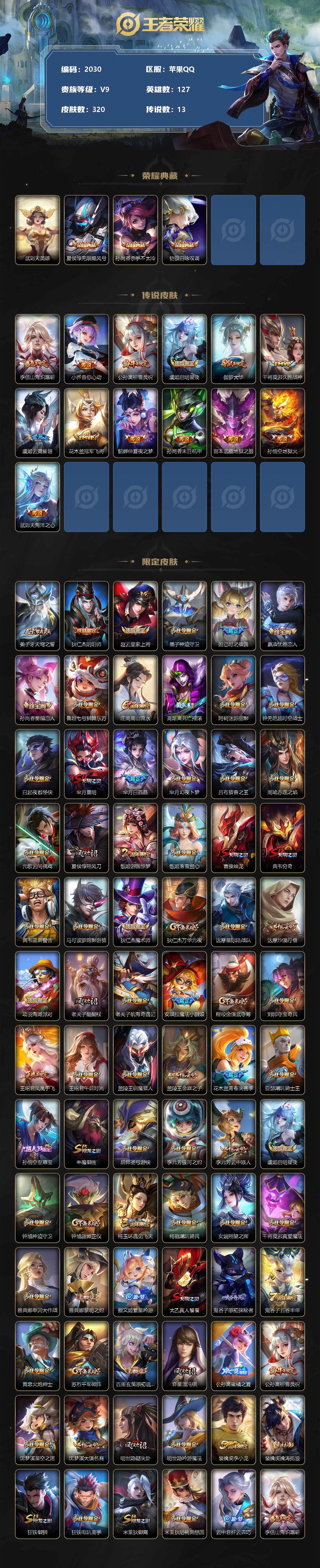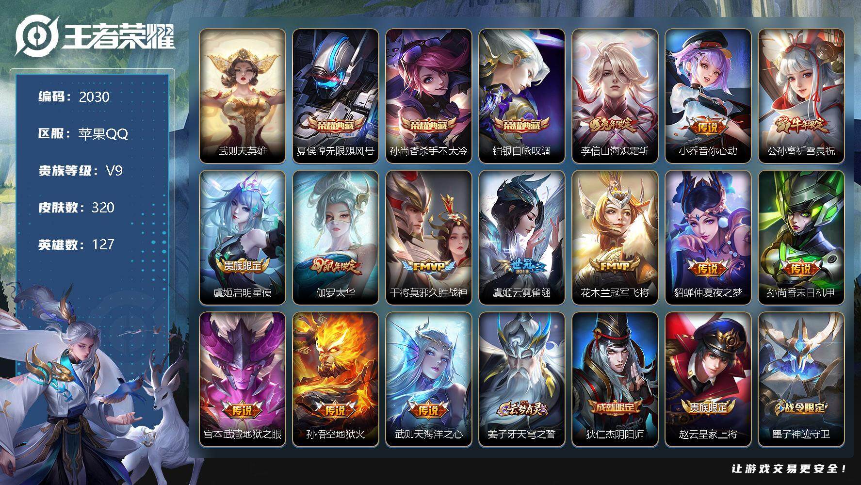 [12746043]苹果Q-V9-永恒钻石IV段位-127英雄-320皮肤-3典藏-0珍品无双-0无双-0珍品传说-13传说-97史诗