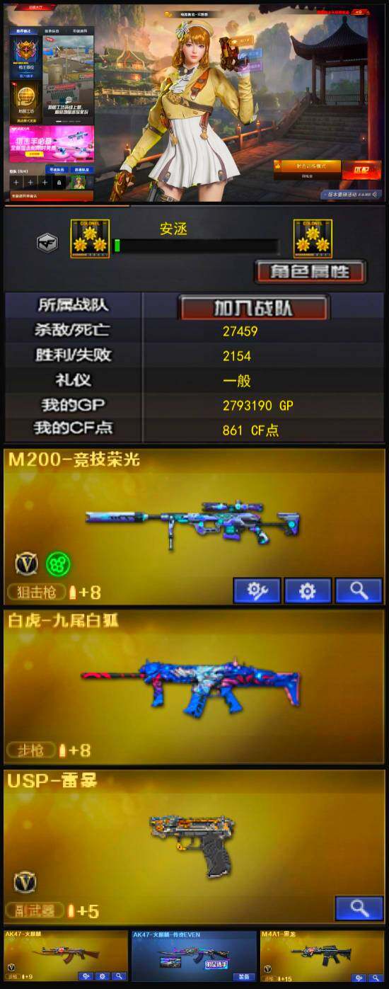 - [11255333]4传说角色 7V武器 可二次 可修改实名 优质装备:M200-幻神,柯尔特-荣耀世冠白鲨2023,AK47-火麒麟,龙啸-烈火龙威,AK47-黑武士-锦绣游龙,无影-神兵利器 排位资格:有 V武器:AK47-黑鲨