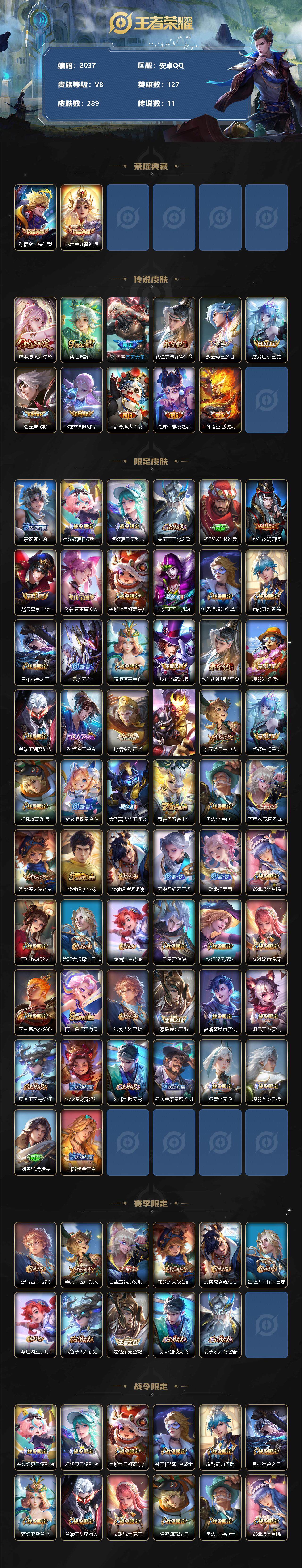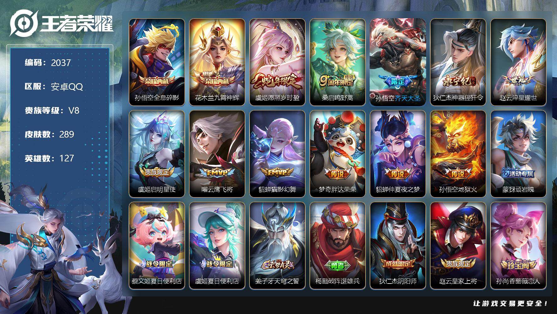 [12747435]安卓Q-V8-永恒钻石III段位-127英雄-289皮肤-2典藏-0珍品无双-0无双-0珍品传说-11传说-70史诗