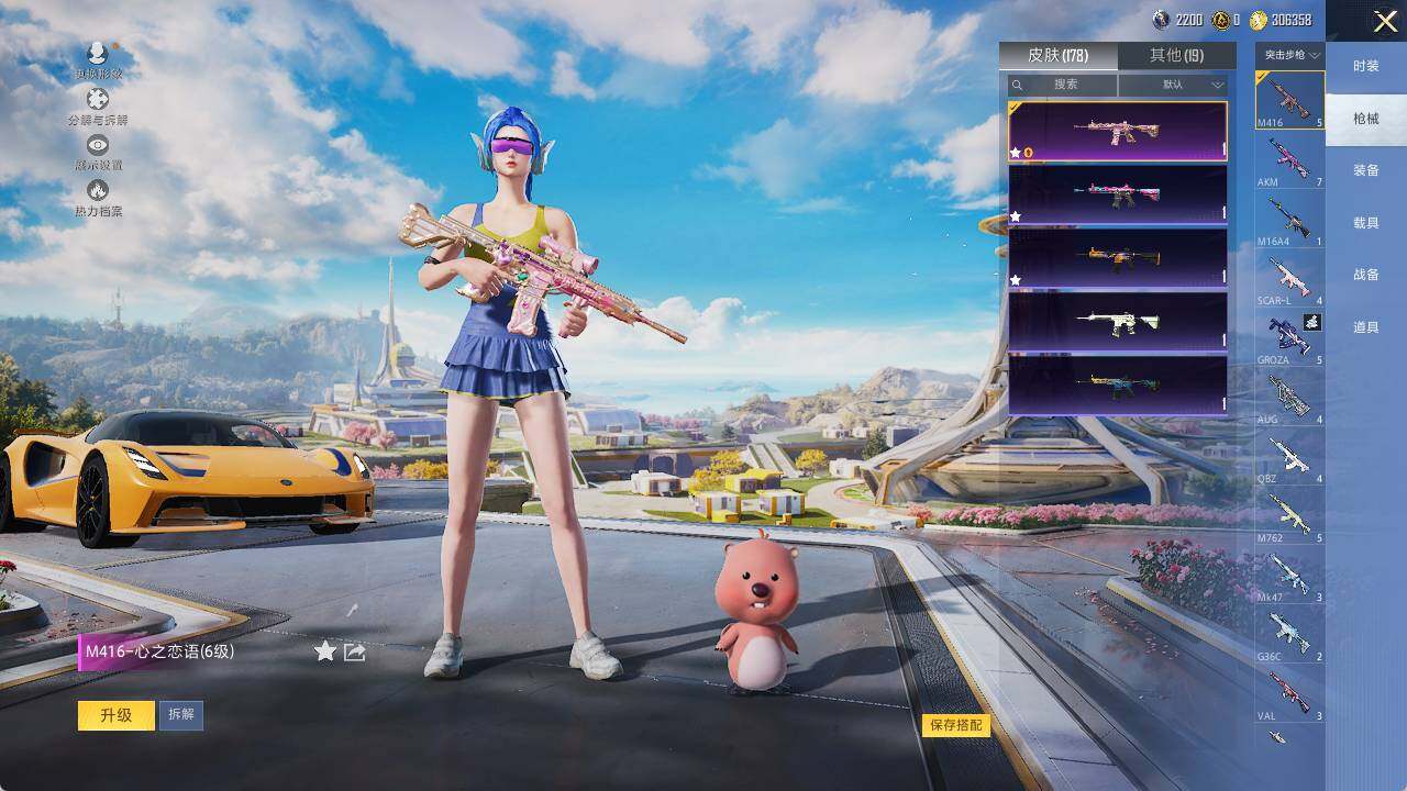 AKM-炫紫旋律,M416-心之恋语,UMP45-量子极限,Kar98K-未来歌姬,Kar98K-巳巳如意