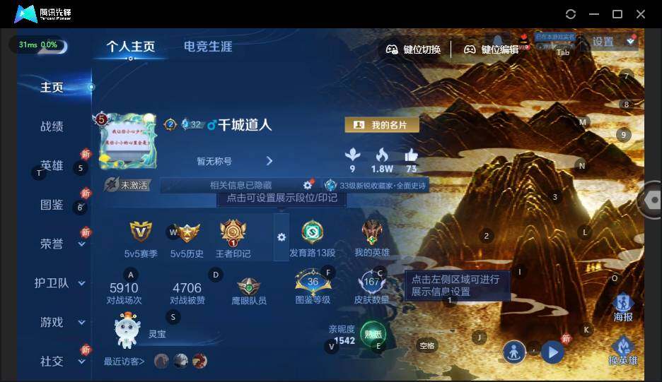 - [11884344]V8 1典藏 11传说 120英雄 197皮肤 可修改实名 优质装备:杀手不太冷,黄金狮子座,久胜战神,一念神魔,末日机甲-孙尚香(绿蚂蚱),零号·赤焰,胖达荣荣,时之恋人-刘备(电焊工) 限定皮:至尊宝,太华(伽罗年限),飞衡(韩信年限),遇见飞天,五谷丰年,武圣,游园惊梦,梁祝,天狼狩猎者,李小龙,逐梦之光,玄武志(苏烈年限),辉光之辰,一生所爱,大圣娶亲,天魔缭乱 史诗皮:白龙吟,黄金分割率,千年之狐,魅语,无限星赏官,冰冠公主,偶像歌手,晚萤,猫狗日记-孙策,时之恋人-孙尚香,修罗,水果甜心,天才门将,星夜王子,功夫厨神,德古拉伯爵,暗隐猎兽者,幽灵船长,鬼剑武藏,舞动绿茵,地狱岩魂,繁星吟游(呼啦呼啦),缤纷独角兽,乘风破浪,水晶猎龙者,曙光守护者,箭羽风息,金属风暴,原初追逐者,鹰眼统帅,暗夜贵公子,魅力维加斯,未来纪元-赵云