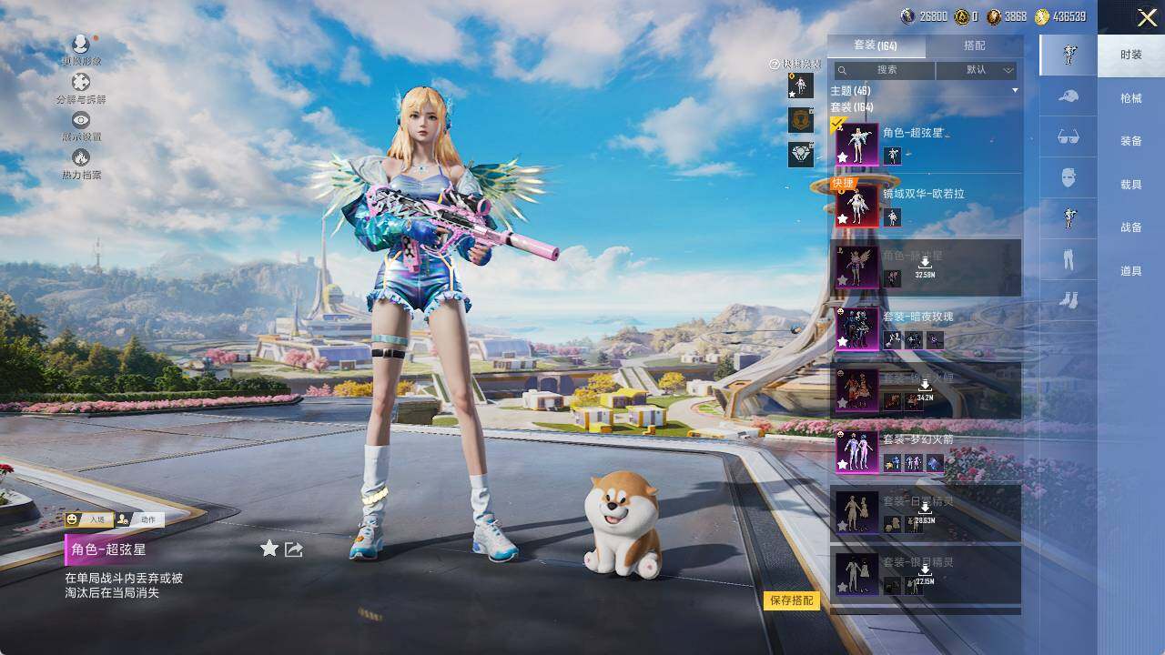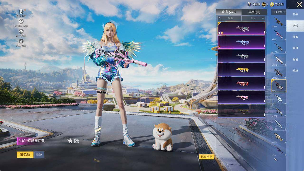 AKM-炫紫旋律,SCAR-L-梦幻火箭,SCAR-L-纯梦嫁纱,M416-五爪金龙,M416-心之恋语,GROZA-超新星,AUG-超新星,AUG-星梦奇缘,M762-激战未来,UMP45-相思残雪,UMP45-宇宙意志,Vector-环太平洋,P90-能量风暴,Kar98K-巳巳如意,M24-镜域双华,MG3-酷泡奶龙,破片手榴弹-粉粉猫爪
