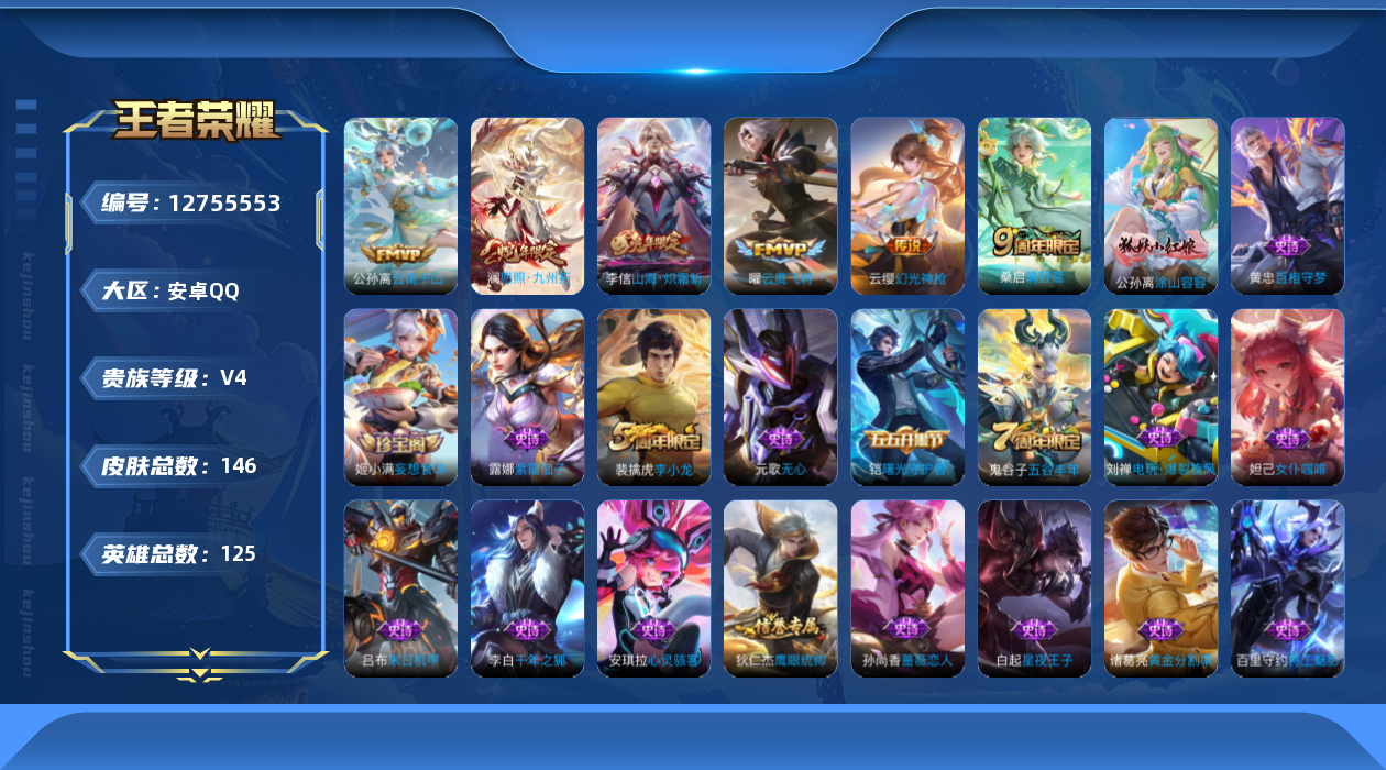 [12755553]安卓Q-V4-至尊星耀IV段位-125英雄-146皮肤--6传说-38史诗