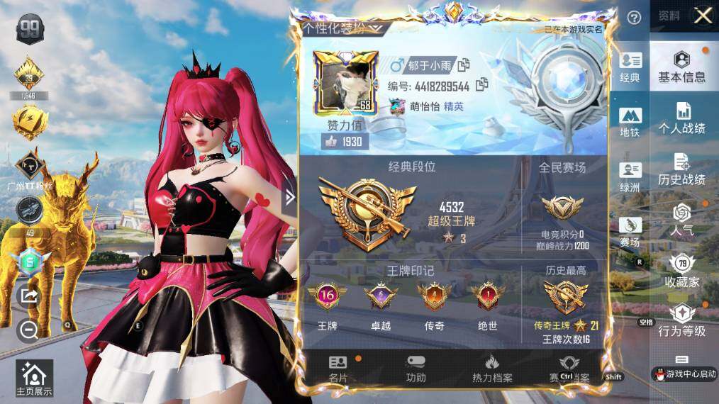 [12755643]2级瑞拉!小丑女!巧克力三姐妹!苹果 手Q-1神装-15粉装-15特效枪-4载具-5粉色飞行器-99766热力值-16王牌印记-224套装-297枪皮