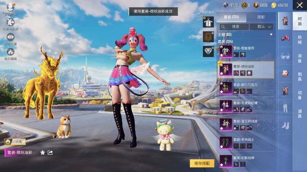 【粉色套装】:粉装-幻影战神,粉装-未来战士,粉装-甜心巧克力,粉装-宝贝奶油派,粉装-天使彩虹糖,粉装-智能音符,粉装-缤纷油彩,粉装-新星烈龙,粉装-彩虹鹿灵,粉装-山涧鹿灵,玩偶服-猪猪侠,粉装-繁龙极客,粉装-星穹咏叹调,角色-狂魅哈莉,角色-绯穹魔姬