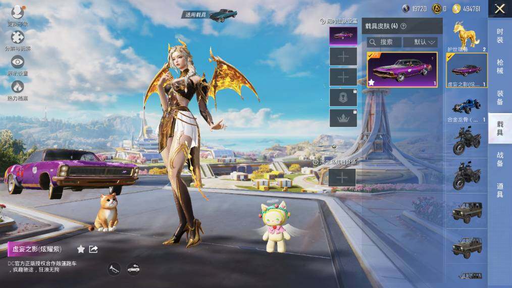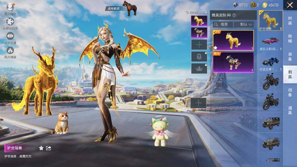 【粉色载具】:虚妄之影(炫耀紫),合金龙骨(蓝),护世瑞兽,黑曜夜骑