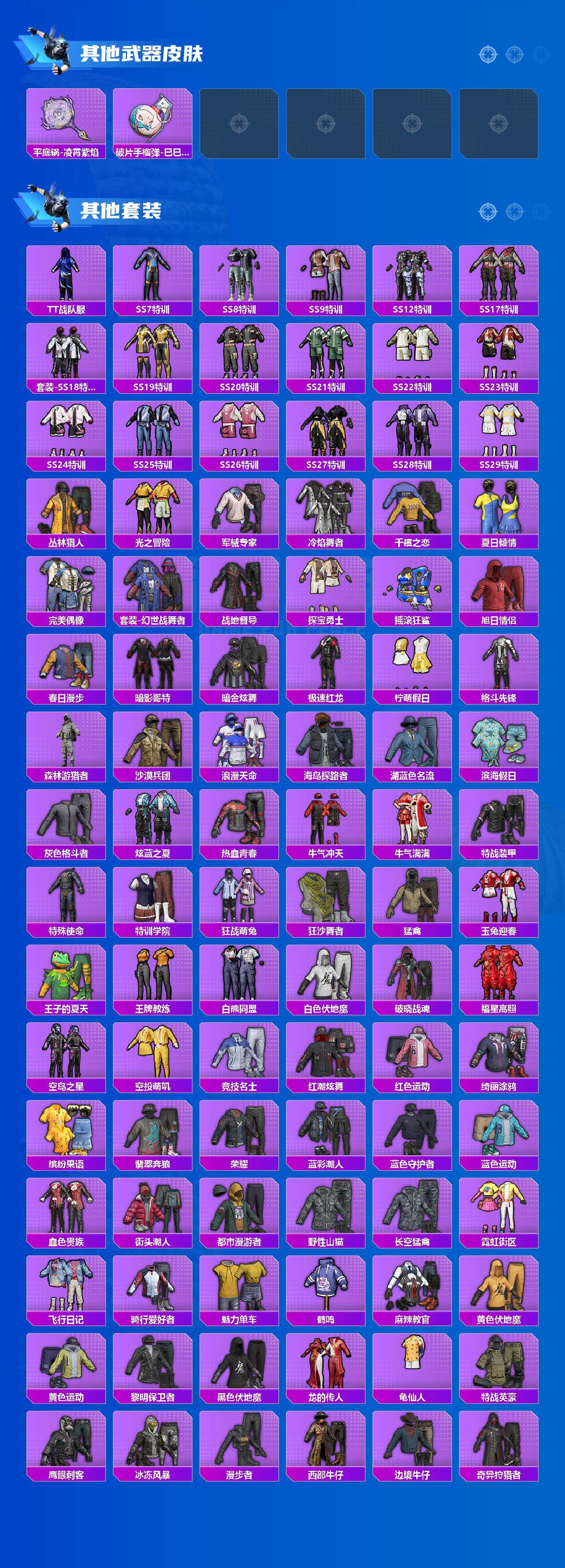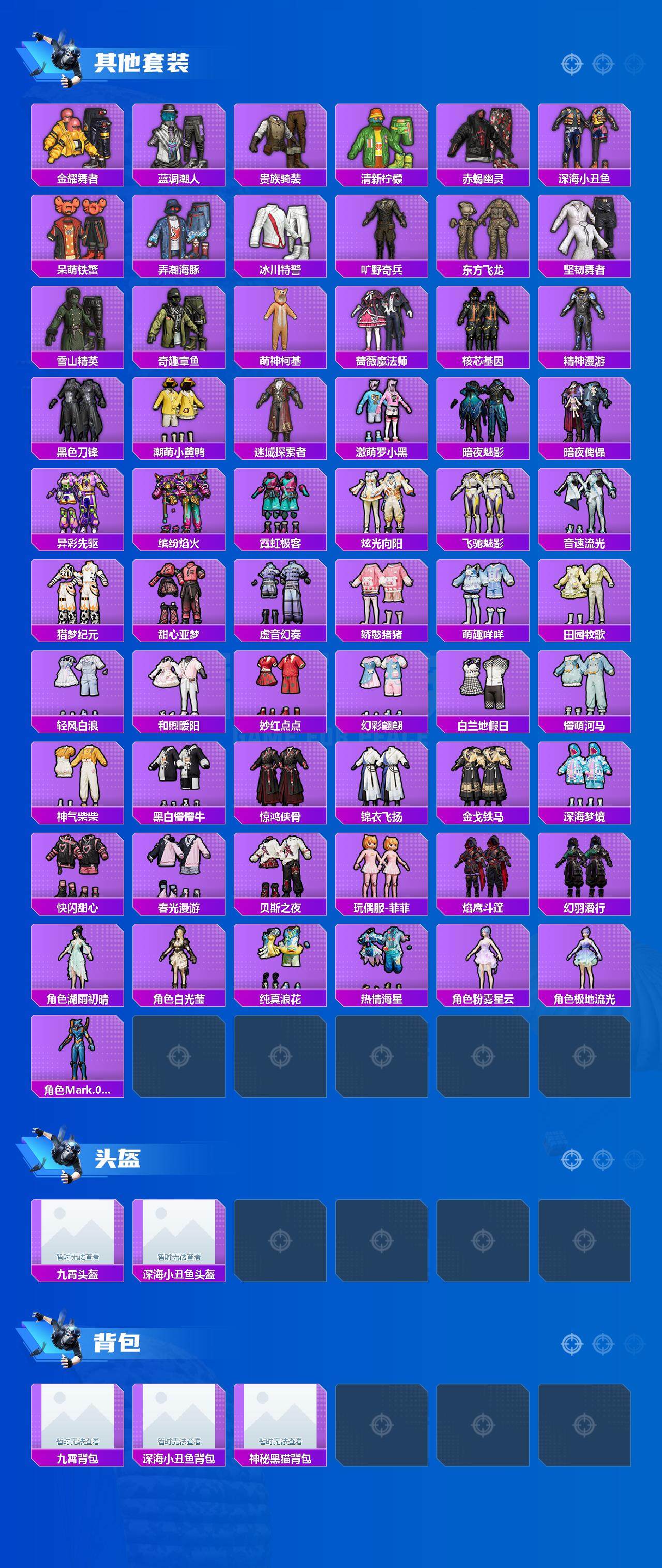 套装-浪漫天命,套装-龟仙人,套装-暗影哥特,角色-Mark.06,套装-极速红龙,套装-狂沙舞者,套装-漫步者,套装-西部牛仔,套装-弄潮海豚,套装-雪山精英,套装-黑色刀锋