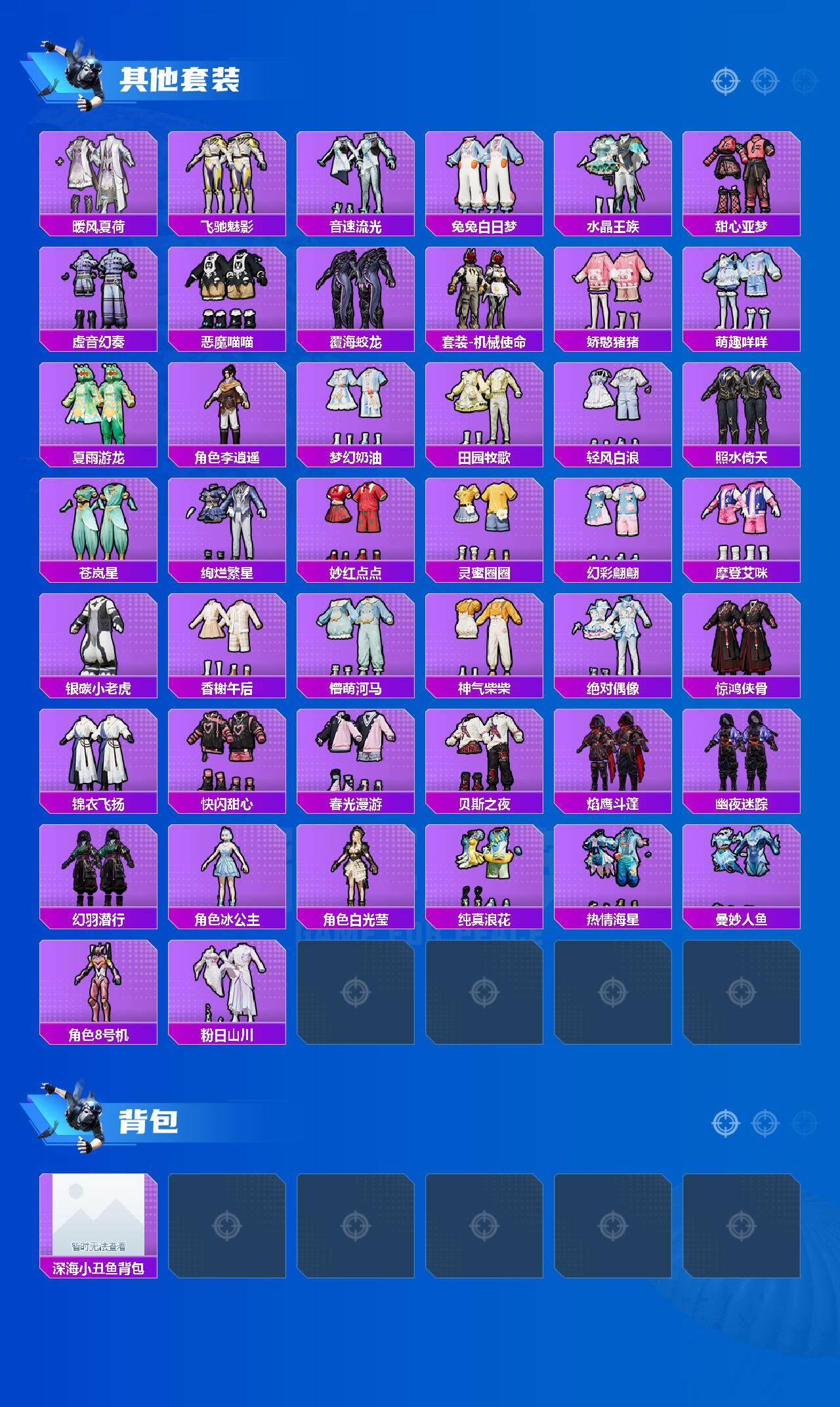 套装-浪漫天命,角色-军刀雅典娜,套装-龟仙人,角色-8号机,套装-狂沙舞者,套装-漫步者,套装-弄潮海豚,套装-纯白誓言
