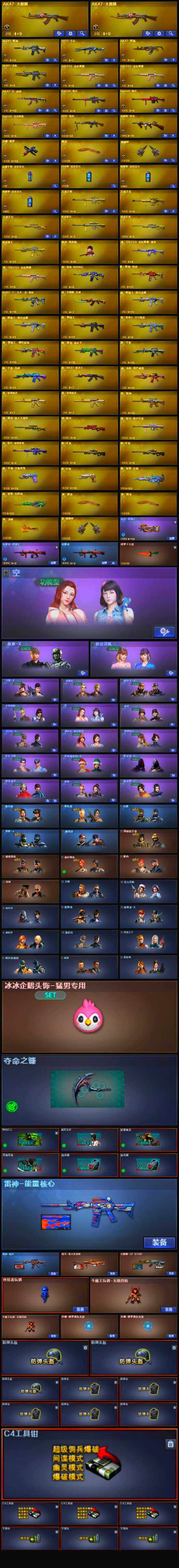 - [11646239]3粉装 5特效枪 4印记 可二次 可修改实名 优质装备:GROZA-镜光银凌,AUG-暖羊咩咩,星穹咏叹调,MK14-甜梦熊击,羊梦糖心,Kar98K-巳巳如意 热门装扮:第五大道,星兔领航员 稀有枪皮:DP-28-豹影疾电 五级特效枪:五级GROZA-镜光银凌,五级Kar98K-巳巳如意,五级DP-28-豹影疾电,五级MK14-甜梦熊击,五级AUG-暖羊咩咩 紫色装扮:田园牧歌,轻风白浪,SS22特训,莱茵河畔,SS23特训,幻彩翩翩,灵蜜圈圈,妙红点点,娇憨猪猪,暖心橘喵,萌趣咩咩,SS21特训,绚烂繁星,SS31特训套装,冰川特警,云朵鹅,雪绒豹,SS33特训套装,SS20特训,飞驰魅影,音速流光,SS19特训,军刀雅典娜,豚鼠丹丹,甜心亚梦,虚音幻奏,水晶王族,酒红色名流,野性战心,长空猛禽,蓝色运动,飞行日记,魅力单车,麻辣教官,黄色伏地魔,黄色名流,黄色运动,黑色伏地魔,龟仙人,冰河战士,龙魂突击队,蝶变,极地朋克,柠萌假日,沙漠兵团,涂山之恋,清新柠檬,夏日音浪,完美偶像,帅气教官,幻世战舞者,探宝勇士,湖蓝色名流,绮丽涂鸦,白色伏地魔,空岛之星,红色运动,王牌教练,牛气冲天,炫蓝之夏,牛气满满,猛禽,特殊使命,特训学院,猎鹰,雏菊兔兔,萝兰蝴蝶,SS29特训,SS28特训,铁血战翼,鱼渊荷华,玉兔迎春,燕燕于飞,巳巳如意,风玲,都市丽猫,林月如,竞技名士,神气柴柴,懵萌河马,SS24特训(SS24特训套装),菲菲,超人强,焰鹰斗篷,幻羽潜行,SS27特训,SS26特训,春光漫游,智谋强哥,星影赞美诗,小鸟芋圆,蓝冰羽,紫幽梦,SS32特训服(SS32特训套装),萌黄之夏,恋语绒绒,金耀舞者,光之冒险 优质战备:星途旅人降落伞,未来领航者降落伞,庄周梦蝶降落伞,炙焰牛王降落伞,恐龙拽拽降落伞,橘柚倾心降落伞,夜幕颂歌飞行器,幻星舰长飞行器,智趣喵喵飞行器,临安公主降落伞,桃粉嫣然降落伞,筑梦精灵降落伞,环太平洋降落伞,翩跹演武降落伞,暗夜鎏金降落伞,纯梦嫁纱降落伞,第五大道降落伞