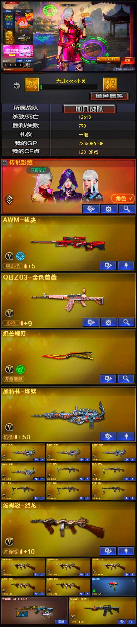 【热门武器】:QBZ03-金色蔷薇,死亡之眼,M4A1-黑骑士,汤姆逊-烈龙*6,RPK-盘龙*5,加特林-炼狱*5,降世魔童,雷神-小红,炽芒蝶刃