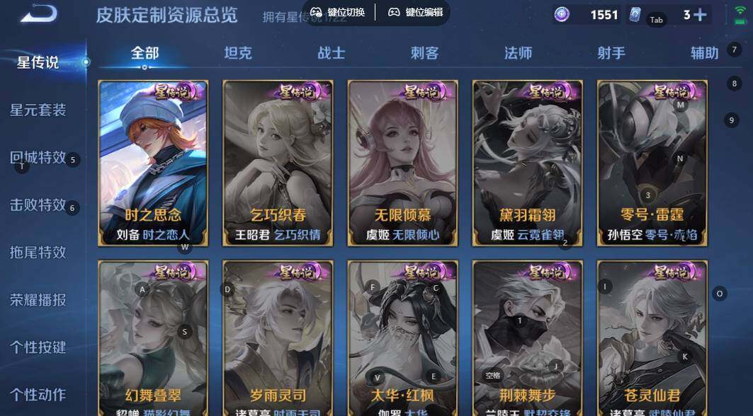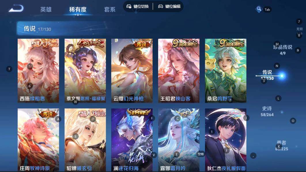 【传说皮肤】:西施续相思,蔡文姬愿照福禄聚,云缨幻光神枪,王昭君映山客,桑启鸣野蒿,庄周牧神诗旅,貂蝉曦玄引,澜逐花归海,露娜霜月吟,狄仁杰夜礼服假面,公孙离记忆之芯,马超无双飞将,蔡文姬花朝如约,西施游龙清影,虞姬启明星使,李信一念神魔,刘备时之恋人