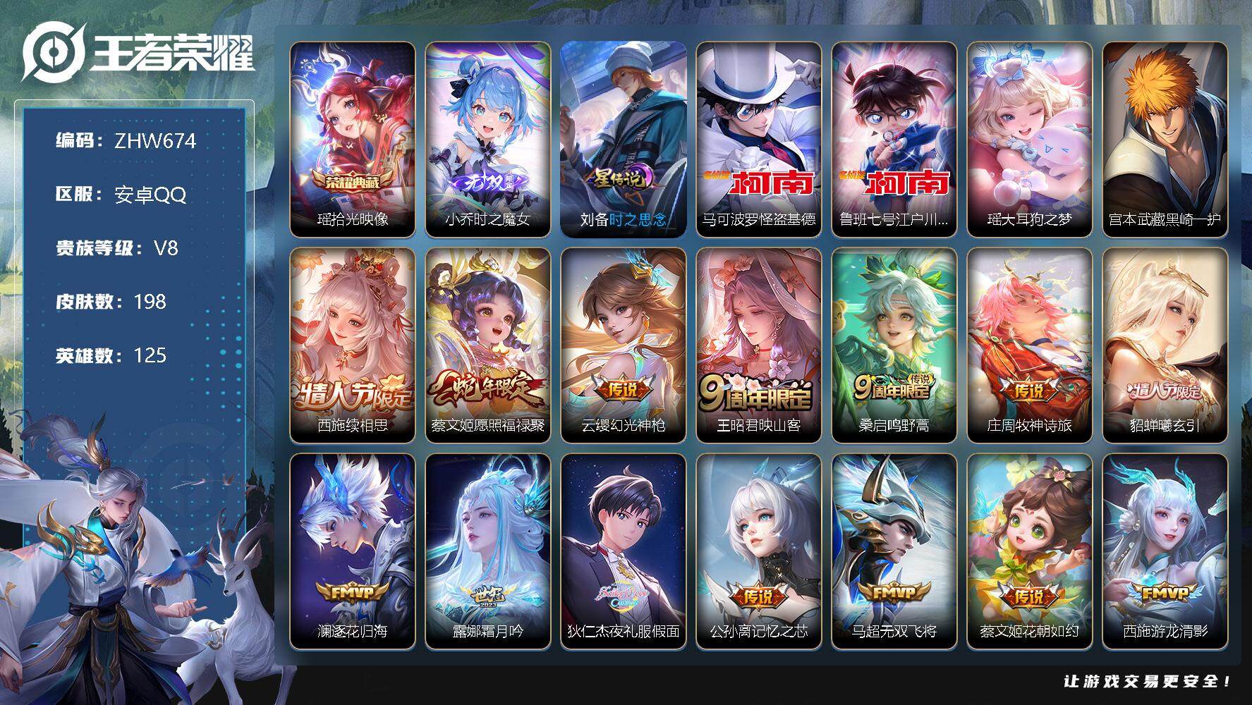 [12785243]女公主号!安卓Q-V8-永恒钻石I段位-125英雄-198皮肤-1典藏--1无双-4珍品传说-17传说-58史诗