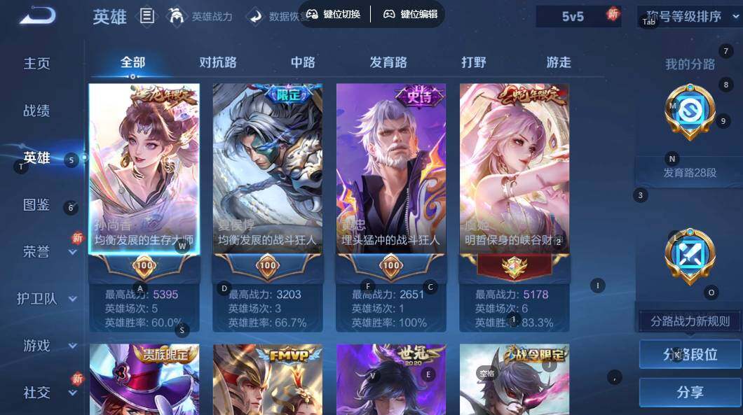 - [11620399]V5 3传说 114英雄 101皮肤 可修改实名 珍宝阁皮:万物之道 限定皮:愿照·九州拓(澜年限),愿照·山河定(司空震年限),鸣野蒿,李小龙 史诗皮:绮世丹青,化蝶舞,龙之律动,石田雨龙,百相守梦-周瑜,茶境仙,百相守梦-百里守约,星界特工,百相守梦-黄忠,电玩小子(小书包),千年之狐,冰冠公主,时之恋人-孙尚香,绅士熊喵,星夜王子,功夫厨神,鬼剑武藏,心灵战警,水晶猎龙者,圣诞狂欢,圣诞恋歌