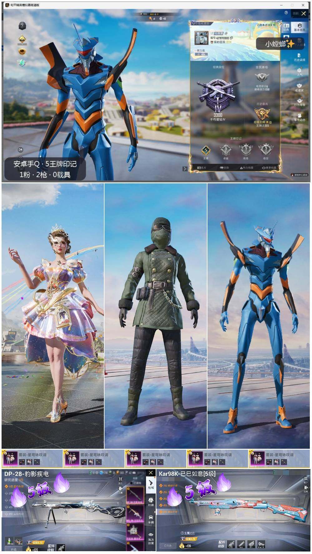 [12786135]地铁满天赋【特价急出/详情看图】:安卓 手Q-1粉装-2特效枪-1粉色飞行器-3.8w热力值-5王牌印记-113套装-128枪皮【热门品类】:套装-龟仙人,角色-Mark.06【粉色套装】:粉装-星穹咏叹调【粉色枪皮等级】:Kar98K-巳巳如意(五级),DP-28-豹影疾电(五级)【粉色枪皮】:Kar98K-巳巳如意,DP-28-豹影疾电【粉色飞行器】:潮汐统领飞行器