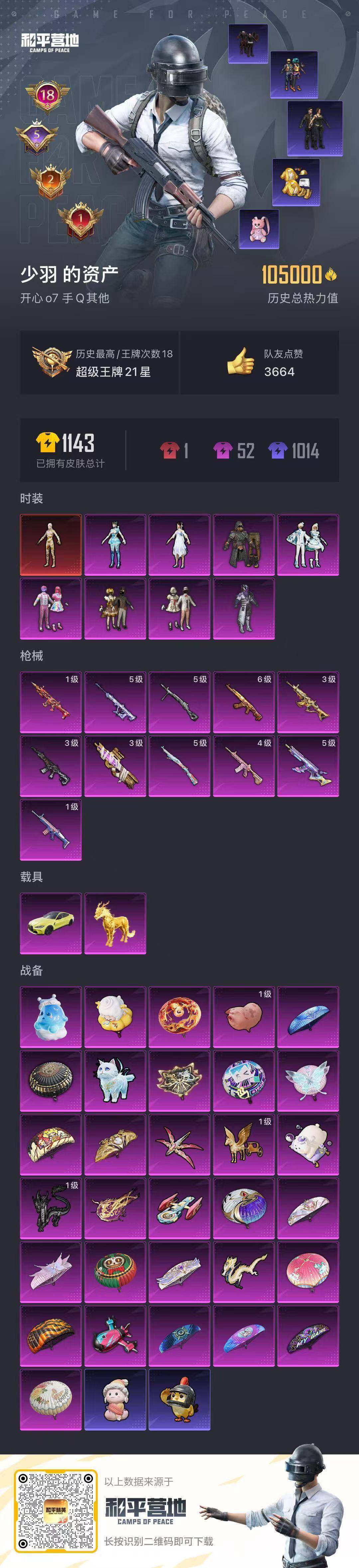 - PX_2088062- 可二次 安卓手Q-3王牌印记-1粉装-5特效枪-0载具-31149热力值-60套装-106枪皮-0卓越印记-0传奇印记 【1粉装】,光明术士 【5特效枪】,AKM-绿萝繁花-5级 GROZA-镜光银凌-5级 AUG-暖羊咩咩-5级 Kar98K-巳巳如意-5级 UZI-筑梦精灵-7级 【60稀有时装】,街头风暴,鱼渊荷华,SS30特训,燕燕于飞,战术大师,智谋强哥,许七安