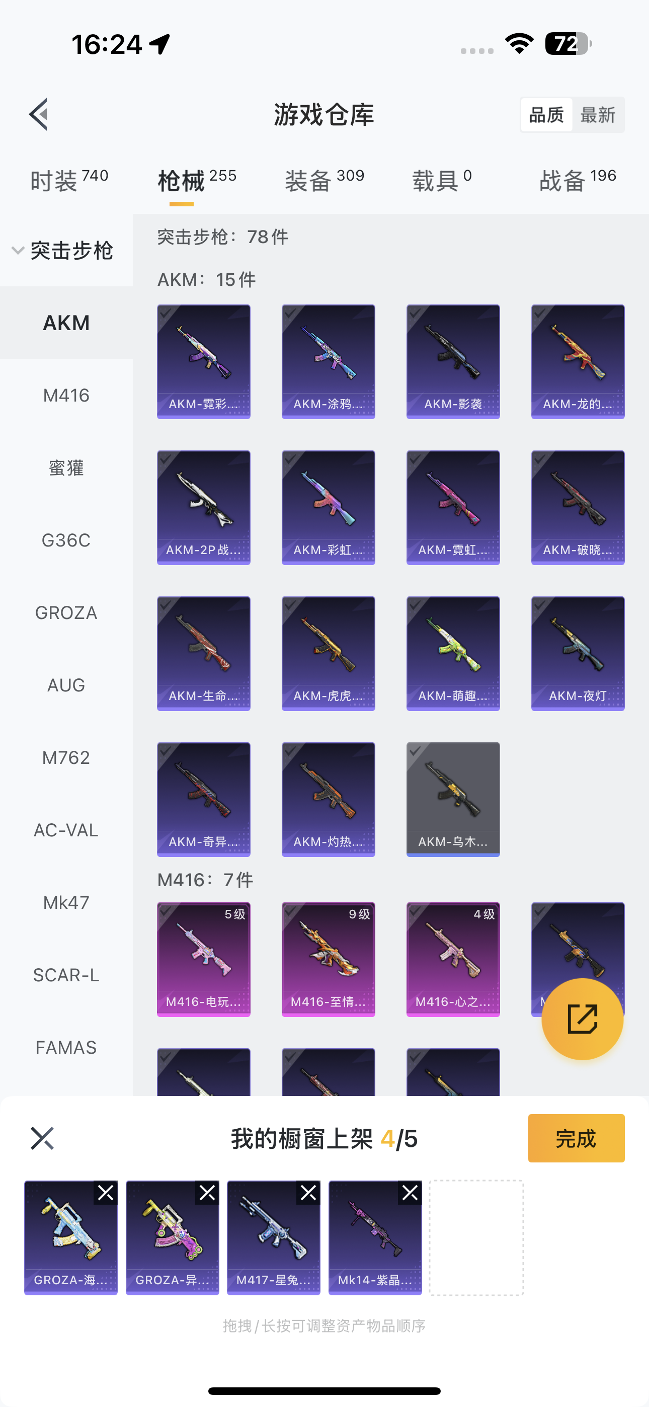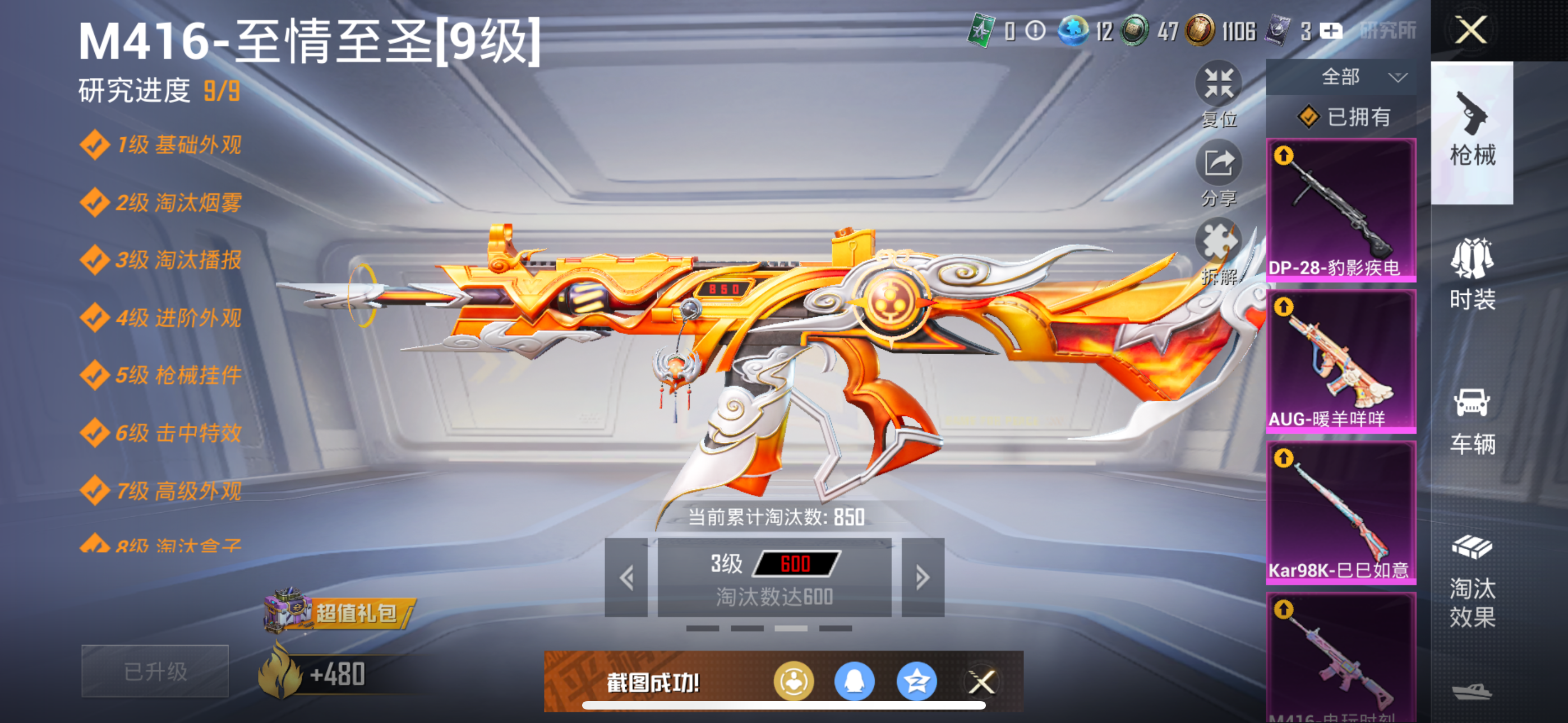 AUG-暖羊咩咩,Kar98K-巳巳如意,M416-电玩时刻,M416-至情至圣,M416-心之恋语,AUG-超新星,SCAR-L-锦绣绵绵