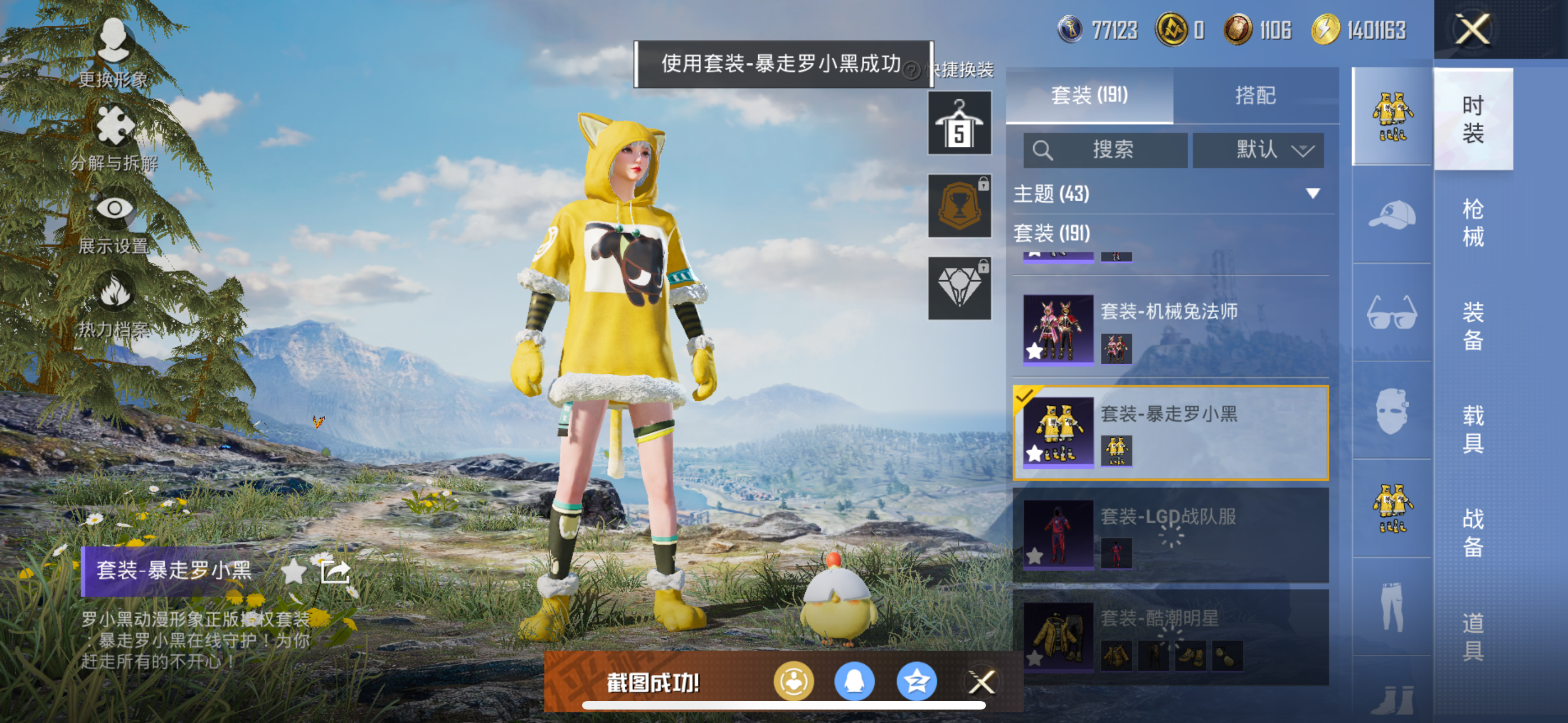套装-奇异狩猎者,套装-梦幻火箭,套装-天使彩虹糖,套装-碧影闪光,套装-闲梦青缨,套装-暴走罗小黑,套装-鹰眼刺客,套装-都市猎人