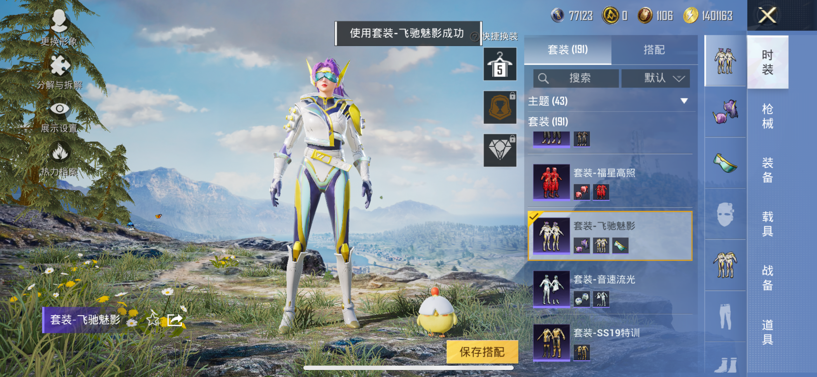- [12201641]2粉装 4特效枪 1印记 可二次 可修改实名 连体王者 身法装备:8号机(新粉螳螂),Mark.06(新蓝螳螂) 优质装备:UMP45量子极限,GROZA-镜光银凌,月影灵韵,Kar98K-巳巳如意 热门装扮:紫电风暴,深海小丑鱼 稀有枪皮:DP-28-豹影疾电 五级特效枪:五级UMP45-量子极限,五级GROZA-镜光银凌,五级Kar98K-巳巳如意 一级特效枪:一级DP-28-豹影疾电 紫色装扮:SS31特训套装,冷焰舞者,缤纷果语,黑色伏地魔,冰河战士,蝶变,幻世战舞者,破蛋小黄鸡,福星高照,雏菊兔兔,萝兰蝴蝶,SS29特训,星途旅人,纯真浪花,热情海星,SS28特训,铁血战翼,8号机(新粉螳螂),Mark.06(新蓝螳螂),鱼渊荷华,燕燕于飞,巳巳如意,森林游猎者,竞技名士,许七安,智谋强哥,奇趣章鱼,耀粉歌者,蓝冰羽,SS32特训服(SS32特训套装),青玉碎影,新风雅兰,恋语绒绒,金耀舞者 优质战备:守护天翼降落伞,创世·救赎降落伞,公主华盖飞行器,金丰海韵降落伞,临安公主降落伞,百万伏特降落伞