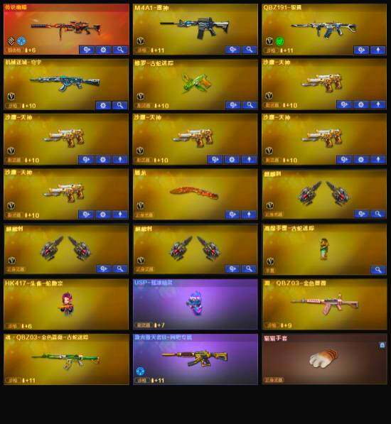 【英雄级武器】:M4A1-雷神,M4A1-赤狱骑士,修罗-古蛇迷踪,沙鹰-天神*5,麒麟刺*3,屠龙