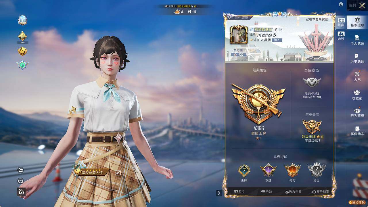 - [8898957]实名: 可修改 时装数: 664 载具数: 1 枪械数: 192 战备数: 165 热门装扮: 梦幻火箭(新101),极限特训,呆萌铁蟹,鹰眼刺客,都市猎人,洛天依,冰川红玫,冰川幽秘,潮萌小黄鸭,胖达圆圆,仲夏莫吉托,第五大道,未来歌姬,初号机 觉醒Ver.,未来领航者 载具: 玛莎拉蒂Quattroporte(夜幕蓝) 稀有枪皮: SCAR-L纯梦嫁纱,M417第五大道,M24莲影清波,M416电玩时刻,Kar98K-巳巳如意 亮点: 10粉装-5特效-1载具-热力值63019-总套装664-总枪皮192-王牌印记12-历史最高超级王牌20星-粉套-极限特训,粉套-冰川幽秘,粉套-冰川红玫,粉套-第五大道,粉套-仲夏莫吉托,粉套-未来歌姬,角色-初号机 觉醒Ver.,粉套-未来领航者-SCAR-L-纯梦嫁纱(7级),M416-电玩时刻(5级),Kar98K-巳巳如意(5级),M24-莲影清波(5级),M417-第五大道(4级)-玛莎拉蒂Quattroporte(夜幕蓝)-套装-特训学院,套装-红色运动,套装-黄色运动,套装-蓝色运动,套装-黄色伏地魔,套装-白色伏地魔,套装-黑色伏地魔,套装-竞技名士,套装-湖蓝色名流,套装-黄色名流,套装-猛禽,套装-长空猛禽,套装-漫步者,套装-破晓情侣,套装-冷焰舞者,套装-灼焰舞者,套装-水银刺客,套装-浪漫天命,套装-浪漫假日,套装-战地督导,套装-青春校园,套装-甜蜜告白,套装-春日漫步,套装-滨海假日,套装-鹰眼刺客,套装-冰冻风暴,套装-冷酷挑战者,套装-完美偶像,套装-人气偶像,套装-幻影武者,套装-摇滚战魂,套装-摇滚舞王,套装-街头潮人,套装-蓝彩潮人,套装-酷萌兔限定,套装-魅力单车,套装-绮丽涂鸦,套装-坚韧舞者,套装-竞技达人朋克,套装-夜莺强袭者,套装-野性战心,套装-破晓战魂,套装-都市魅力,套装-热血青春,套装-传奇侦探,套装-暗影哥特,套装-呆萌铁蟹,套装-缤纷果语,套装-滨海厨神,套装-龙魂突击队,套装-特种空勤,套装-和平特警,套装-风暴特警,套装-冰川特警,套装-极速红龙,套装-破蛋小黄鸡,