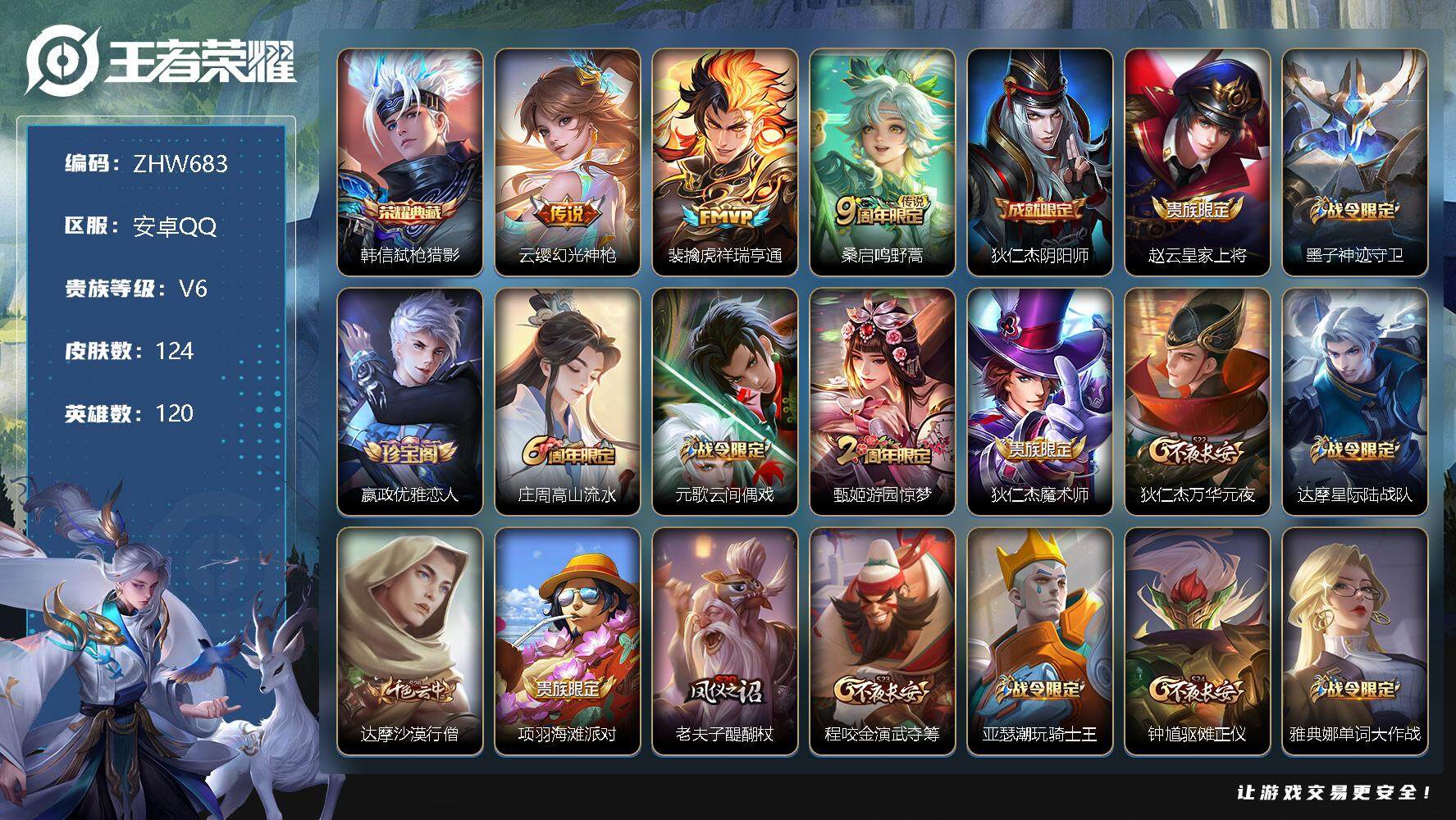 [12803726]【特价急出/详情看图】安卓Q-V6-至尊星耀V段位-120英雄-124皮肤-1典藏-3传说-33史诗