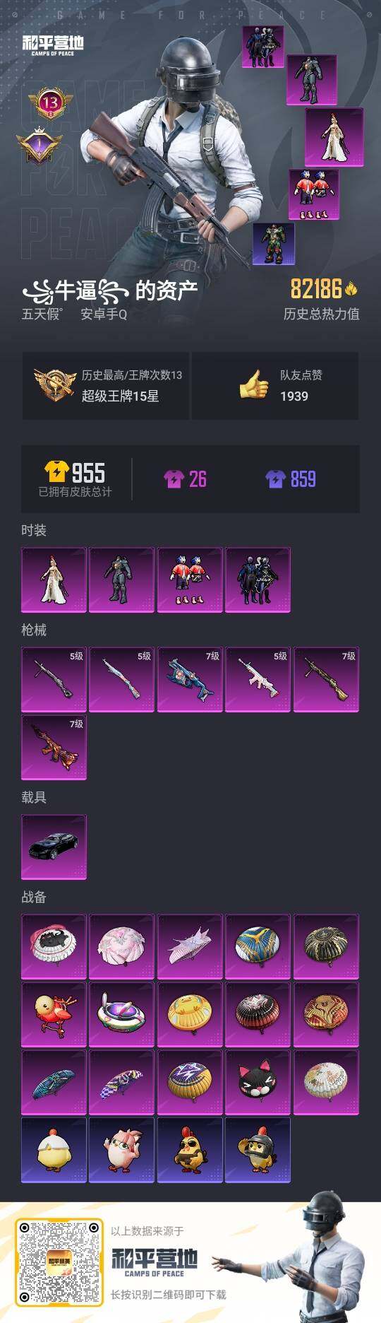 - PX_2057155- 安卓手Q-6王牌印记-3粉装-5特效枪-1载具-50198热力值-109套装-159枪皮-1卓越印记-0传奇印记 【3粉装】,荧海星豚,深渊皇后,创世·救赎 【5特效枪】M416-风花雪月-7级 GROZA-镜光银凌-5级 AUG-暖羊咩咩-5级 Kar98K-巳巳如意-5级 AMR-智耀战神-4级 【1红装】,盛世惊鸿-云鸾/2级, 【7稀有紫装】,派对舞王,Mark.