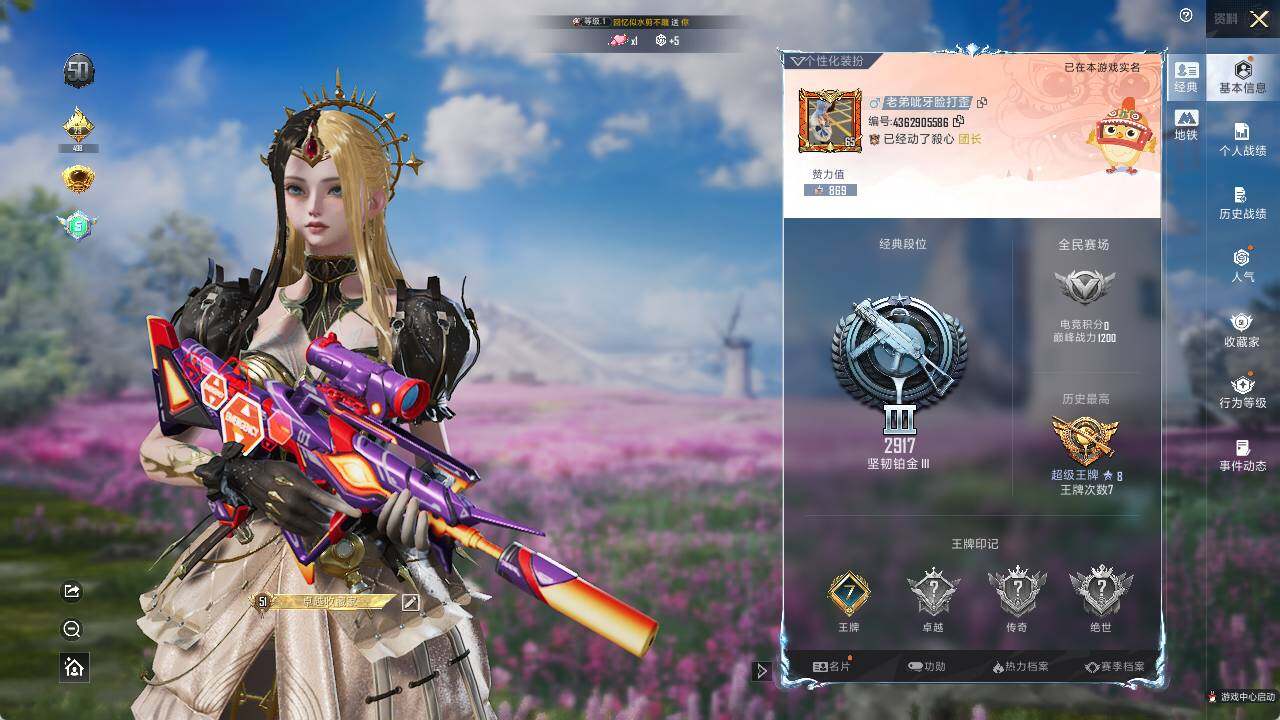 - [12041373]地铁满天赋【特价急出/详情看图】:安卓 手Q-1粉装-4特效枪-1载具-2.9w热力值-4王牌印记-84套装-103枪皮【热门品类】:套装-龟仙人【粉色载具】:玛莎拉蒂Quattroporte(夜幕蓝)【粉色套装】:角色-冷漠罗丽【粉色枪皮等级】:AKM-绿萝繁花(五级),AUG-暖羊咩咩(五级),Kar98K-巳巳如意(五级),Mk14-甜梦熊击(五级)