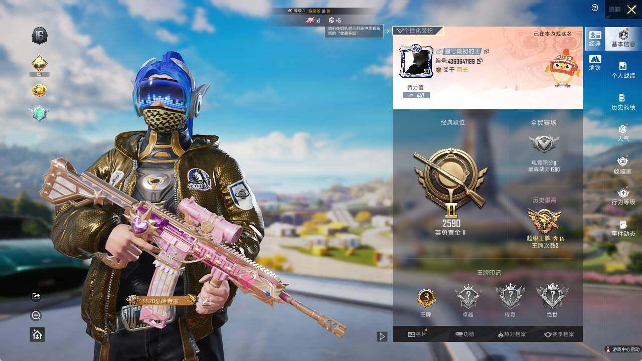 - PX_2099225-实名: 可修改 贵族等级: V4 英雄数: 44 皮肤数: 23 荣耀水晶: 弑枪猎影