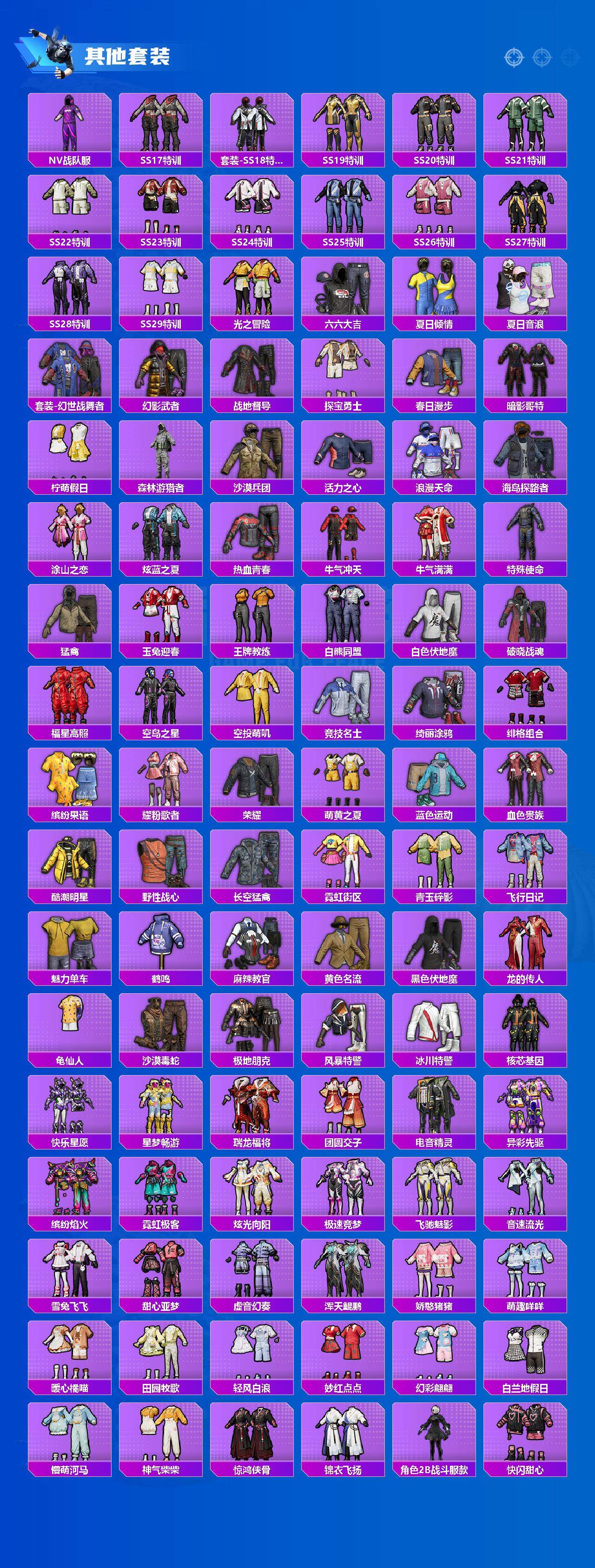 - [11604058]1红装 1粉装 5特效枪 1载具 可二次 优质装备:最终圣卫者-帕修斯,一级最终圣卫者-帕修斯,宝马M4(圣保罗黄),GROZA-镜光银凌,AUG-暖羊咩咩,MK14-甜梦熊击,冷漠罗丽,M416-灵猫魔法师,Kar98K-巳巳如意 五级特效枪:五级GROZA-镜光银凌,五级Kar98K-巳巳如意,五级MK14-甜梦熊击,五级AUG-暖羊咩咩 三级特效枪:三级M416-灵猫魔法师 紫色装扮:SS30特训套装,SS31特训套装,云朵鹅,彩虹兔,雪绒豹,SS33特训套装,顶瓜瓜,缤纷果语,鹤鸣,黑色伏地魔,龟仙人,冰河战士,蝶变,香桃花海,完美偶像,帅气教官,竞技达人朋克,雏菊兔兔,萝兰蝴蝶,SS29特训,星途旅人,巳巳如意,异域银装,鱼渊荷华,燕燕于飞,森林游猎者,绒宝小鹅,青团波波,糖糖葫芦,棉花软糖,竞技名士,街头风暴,红红火火,许七安,智谋强哥,焰鹰斗篷,幻羽潜行,竞速先锋,粉红小猪,大橘大利,星渊小夜曲,星影赞美诗,小鸟芋圆,耀粉歌者,蓝冰羽,紫幽梦,光之冒险 优质战备:星途旅人降落伞,江南烟雨降落伞,千金淑猫降落伞,冷漠罗丽降落伞,灵猫魔法师飞行器,灵猫魔法师降落伞,鬼刀降落伞,月影灵韵降落伞,临安公主降落伞