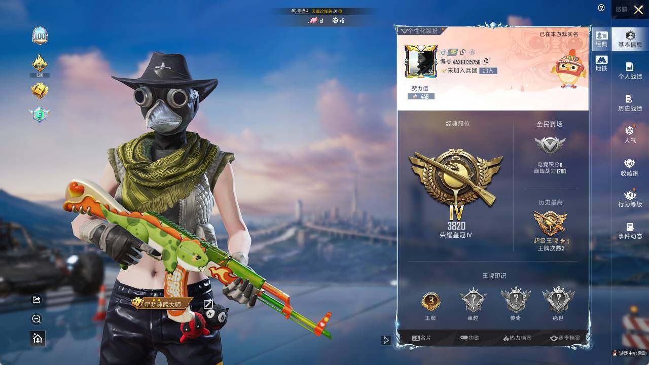 - [11881942]总资产:117.1 1干员外观 3传说枪械 高级安全箱(2×3)9.15号到期 可二次 可修改实名 烽火地带段位:青铜 全面战场段位:无段位 哈夫币:68.080 传说武器皮肤:复合弓-黑-天际线,CAR-15突击步枪-阿米娅,725双管霰弹枪-送葬人-无题密令 干员外观:蜂医-送葬人·无题密令(S5)