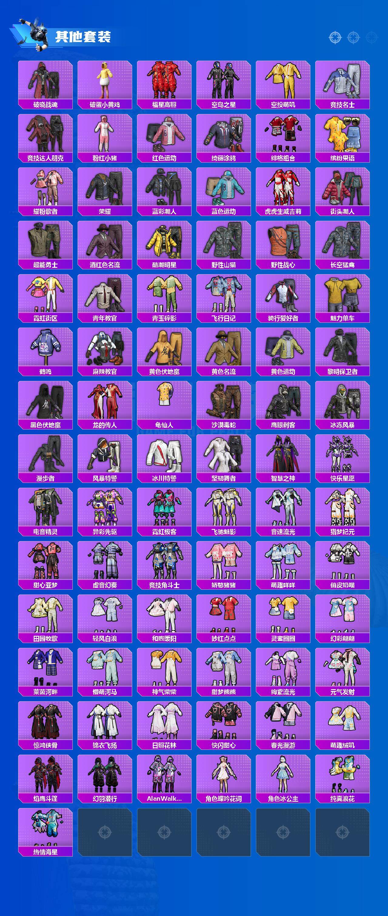角色-军刀雅典娜,套装-龟仙人,套装-暗影哥特,套装-粉红小猪,套装-极速红龙,套装-破蛋小黄鸡,套装-漫步者