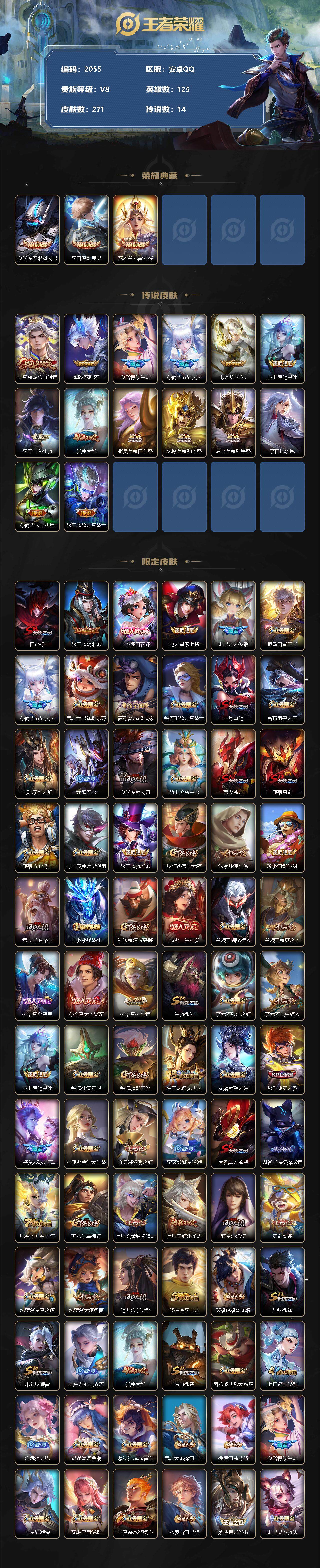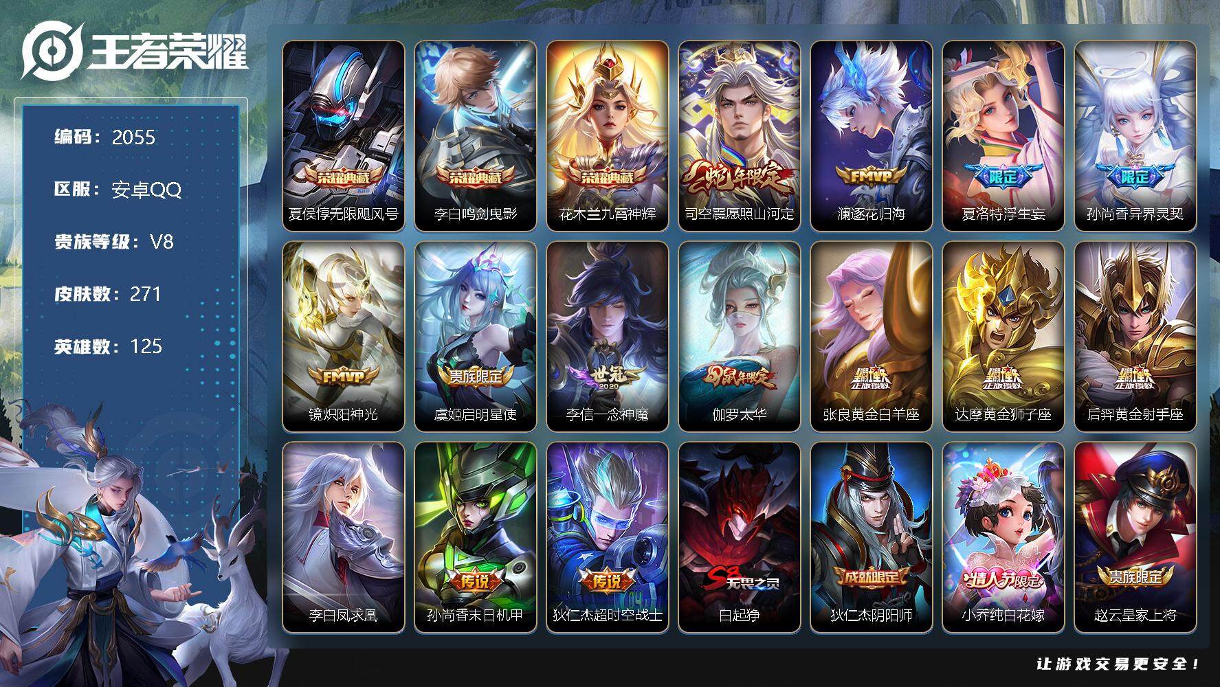 [12810995]安卓Q-V8-至尊星耀II段位-125英雄-271皮肤-3典藏-0珍品无双-0无双-0珍品传说-14传说-79史诗
